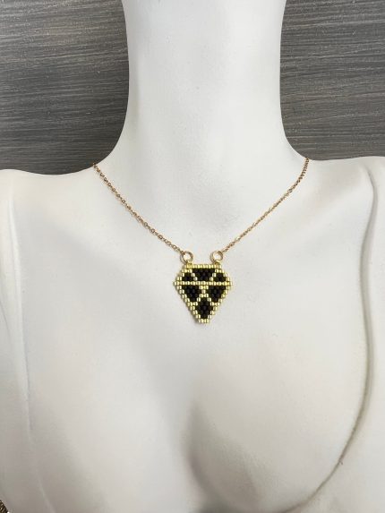 Κολιέ διαμάντι κεντημένο με χάντρες Miyuki και χρυσή αλυσίδα