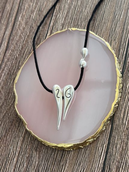 Κολιέ γούρι 2026 φτερά αγγέλου με μαύρο κορδόνι