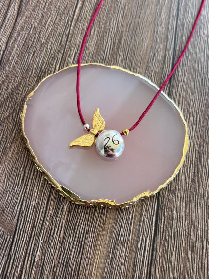 Κολιέ γούρι 2026 φτερά αγγέλου με μπορντώ κορδόνι