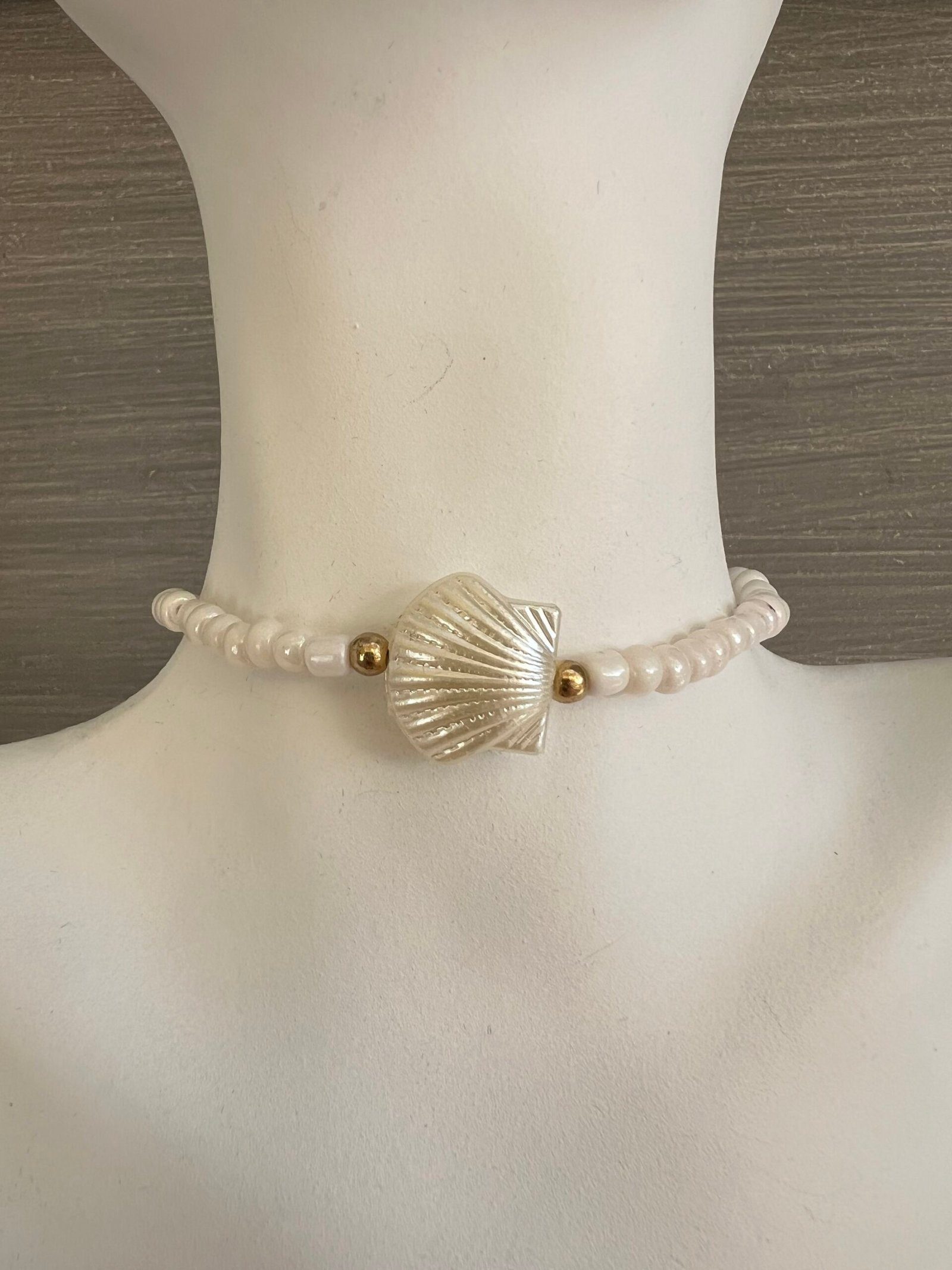Βραχιόλι λευκές χάντρες και κοχύλι