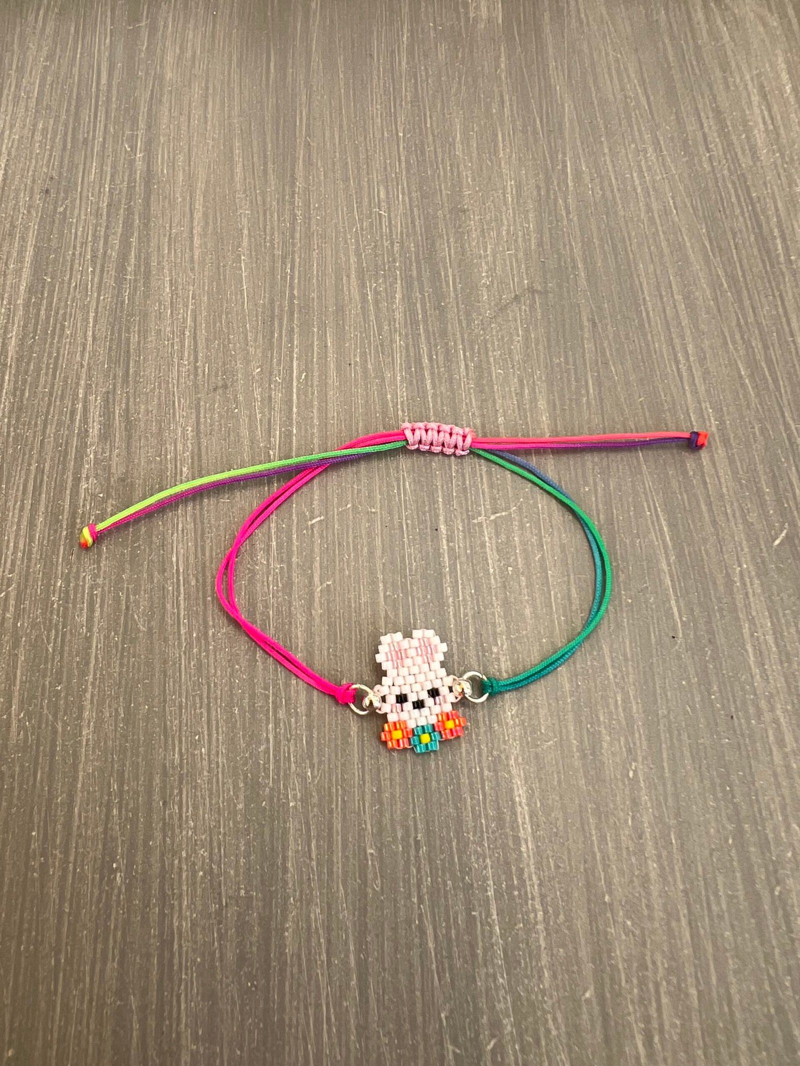 Βραχιόλι μακραμέ με λαγουδάκι κεντημένο με χάντρες Miyuki