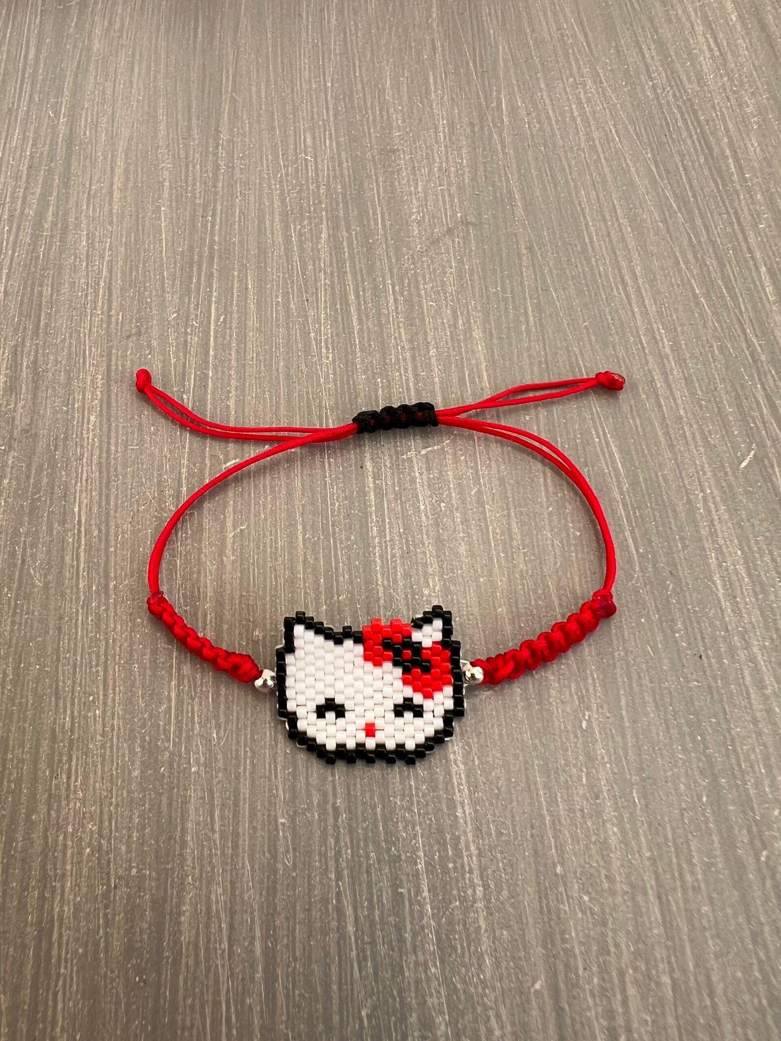 Βραχιόλι μακραμέ με την Hello Kitty κεντημένη με χάντρες Miyuki