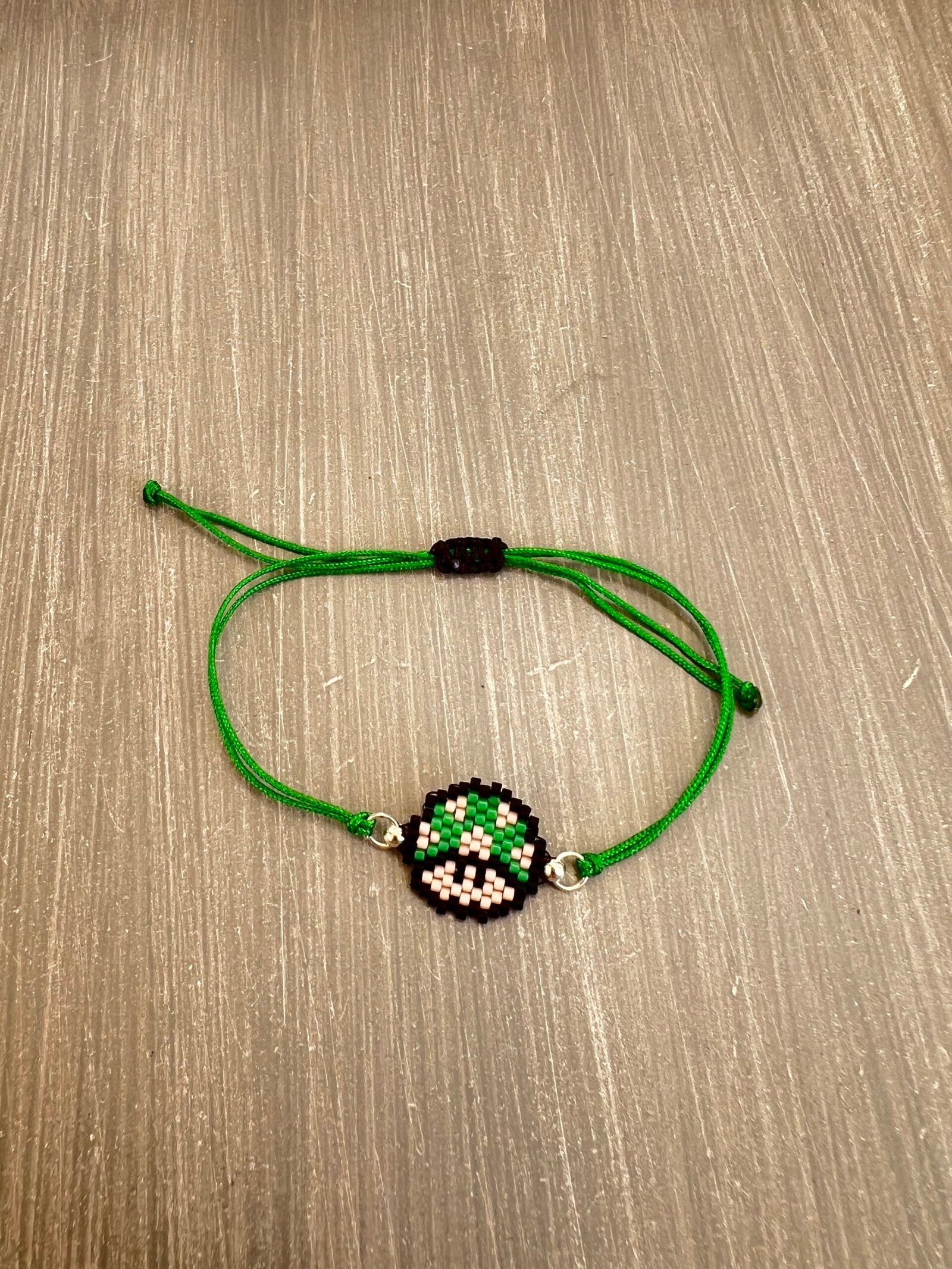Βραχιόλι μακραμέ με τον πράσινο Toαd κεντημένο με χάντρες Miyuki