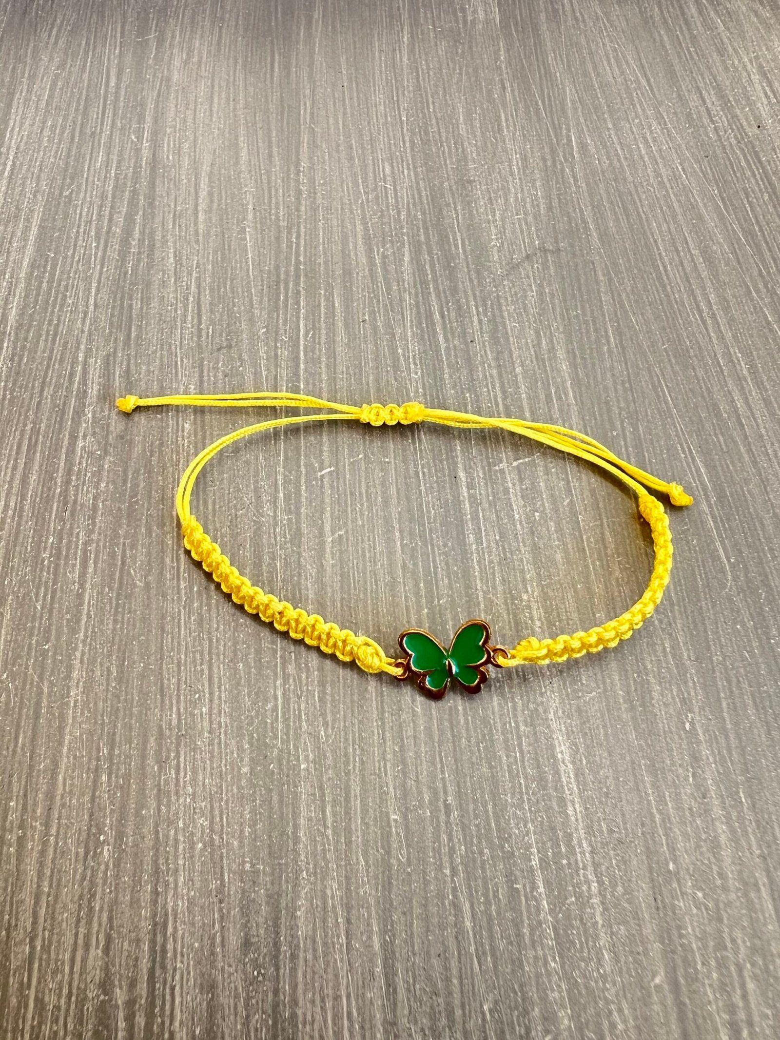 Βραχιόλι μακραμέ πράσινη πεταλούδα με κίτρινο κορδόνι