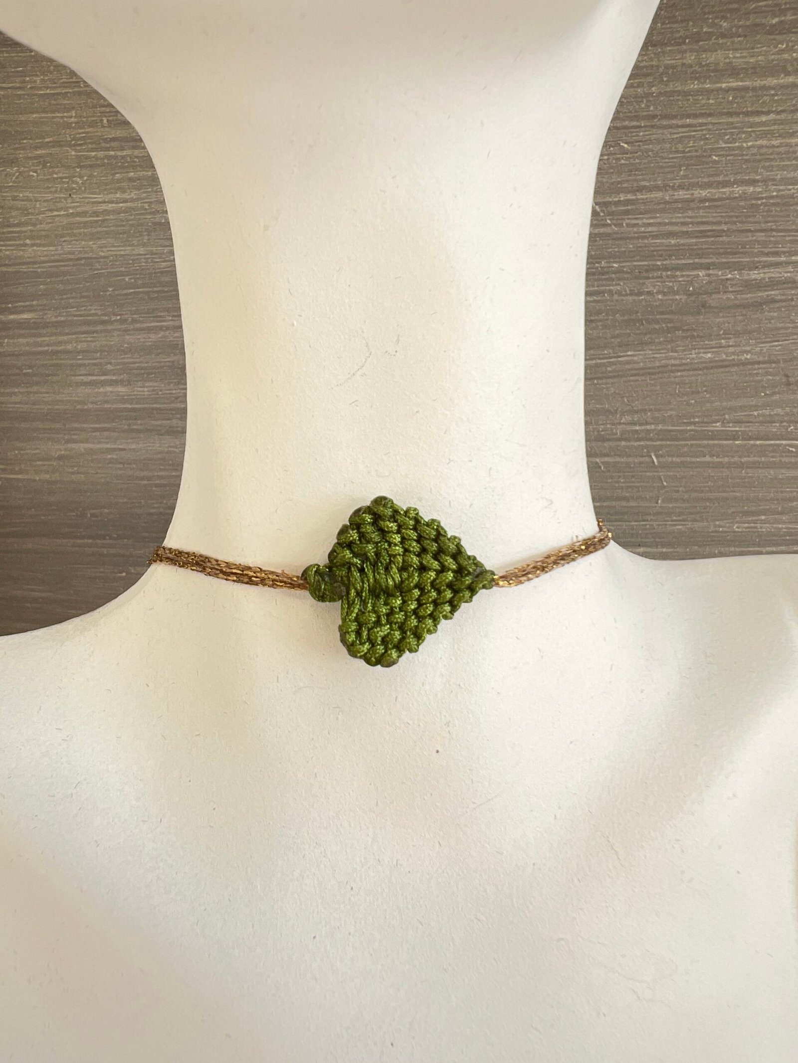 Βραχιόλι μακραμέ πράσινο φύλλο