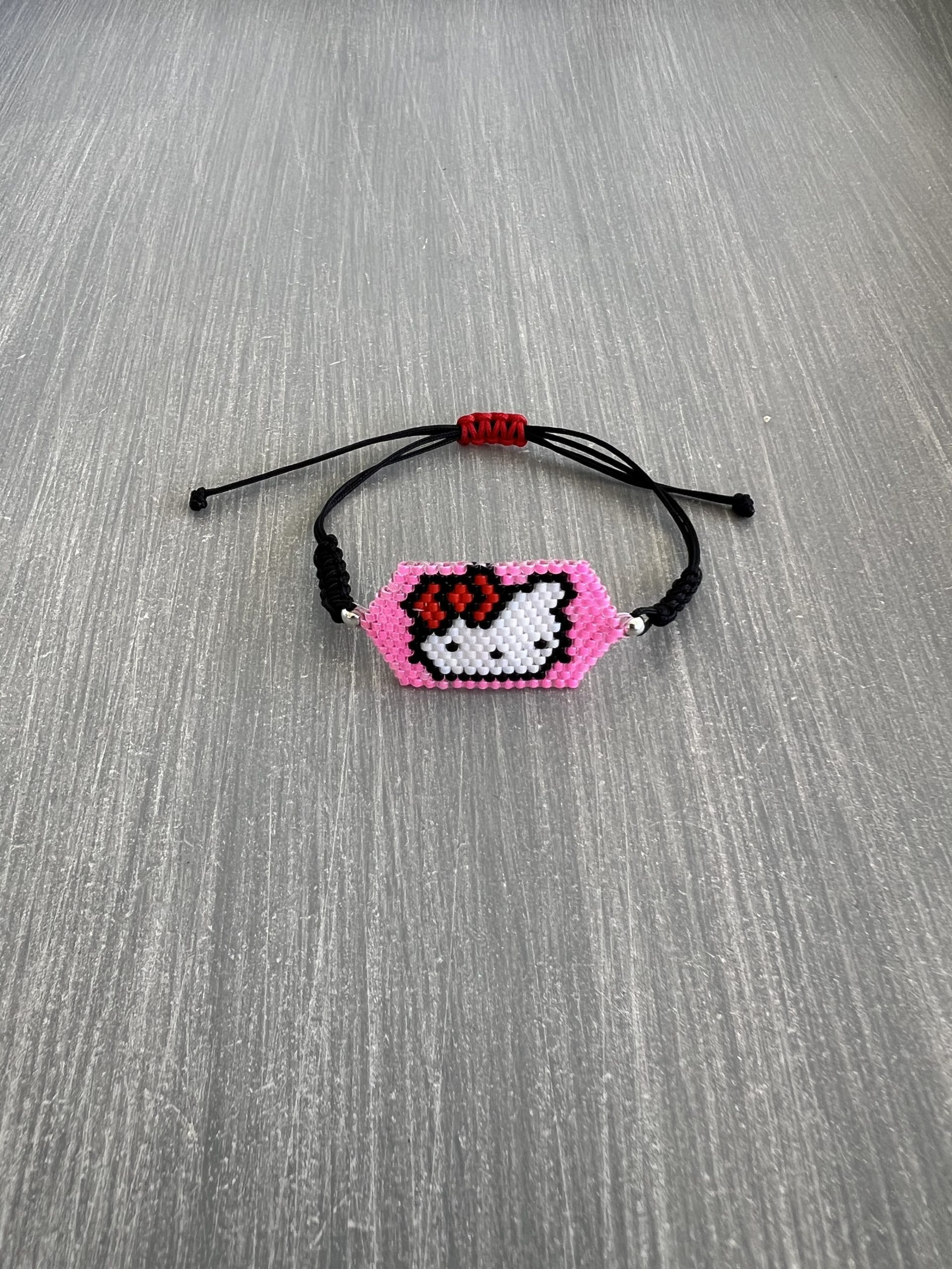 Βραχιόλι μακραμέ Hello Kitty κεντημένη με χάντρες Miyuki