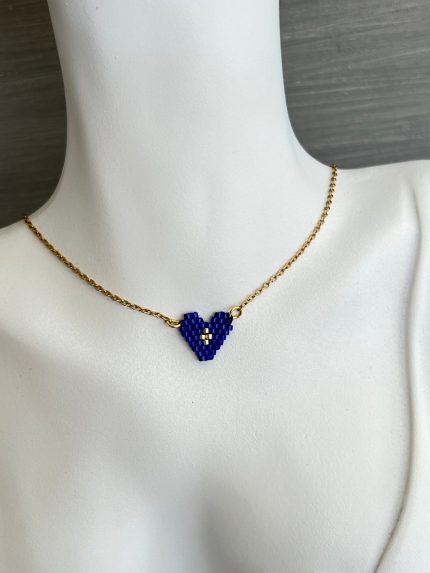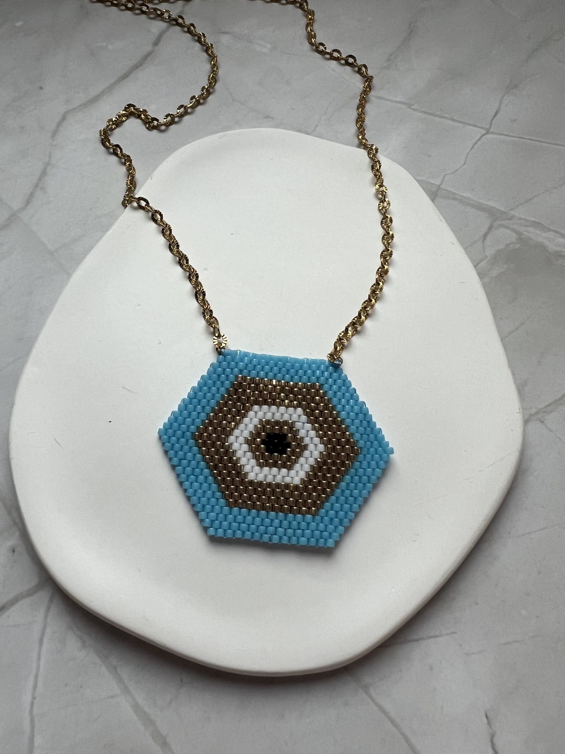 Κολιέ γαλάζιο πολυγωνικό μάτι κεντημένο με χάντρες Miyuki