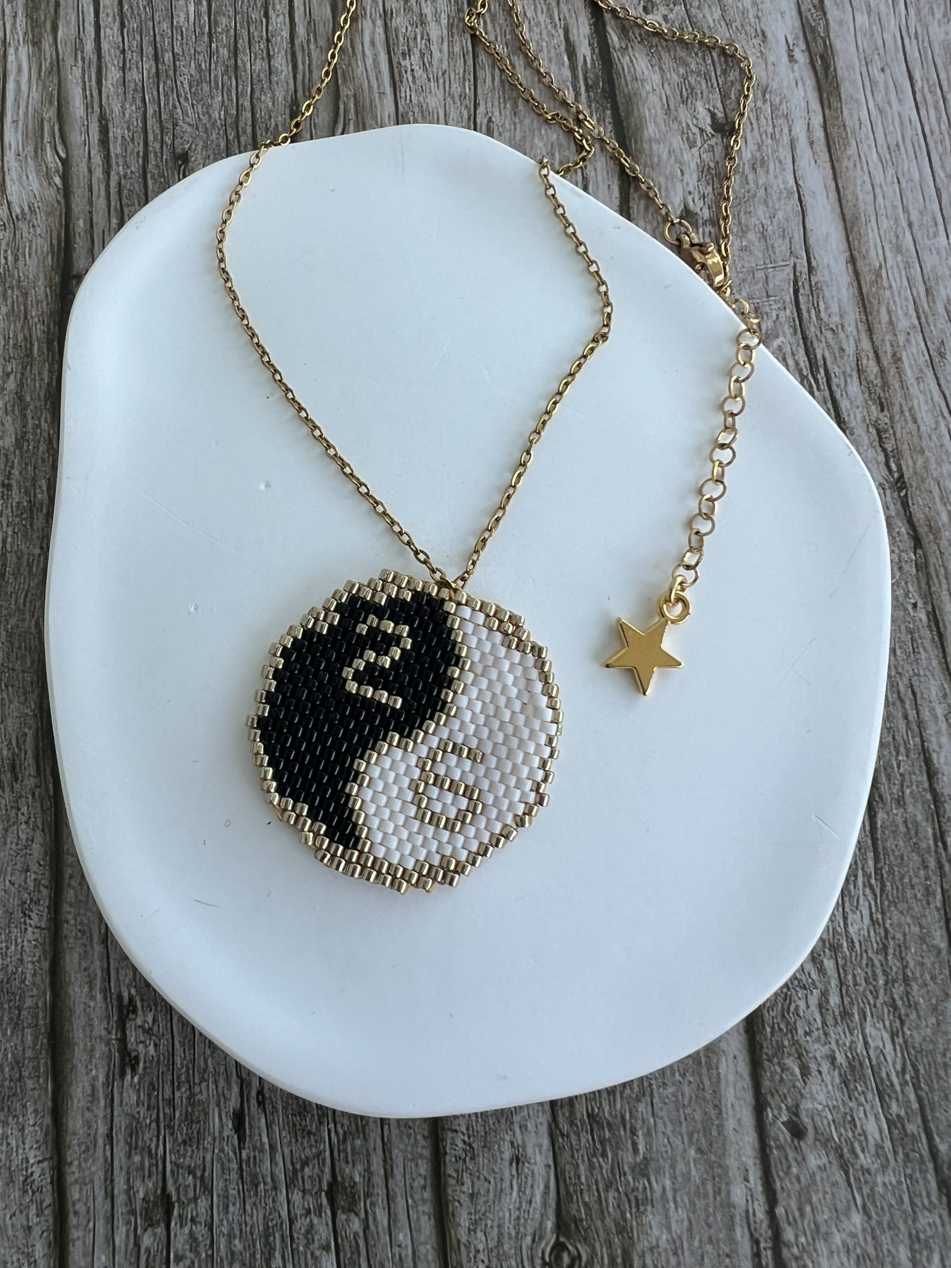 Κολιέ γούρι 2026 κεντημένο με χάντρες Miyuki και χρυσή αλυσίδα