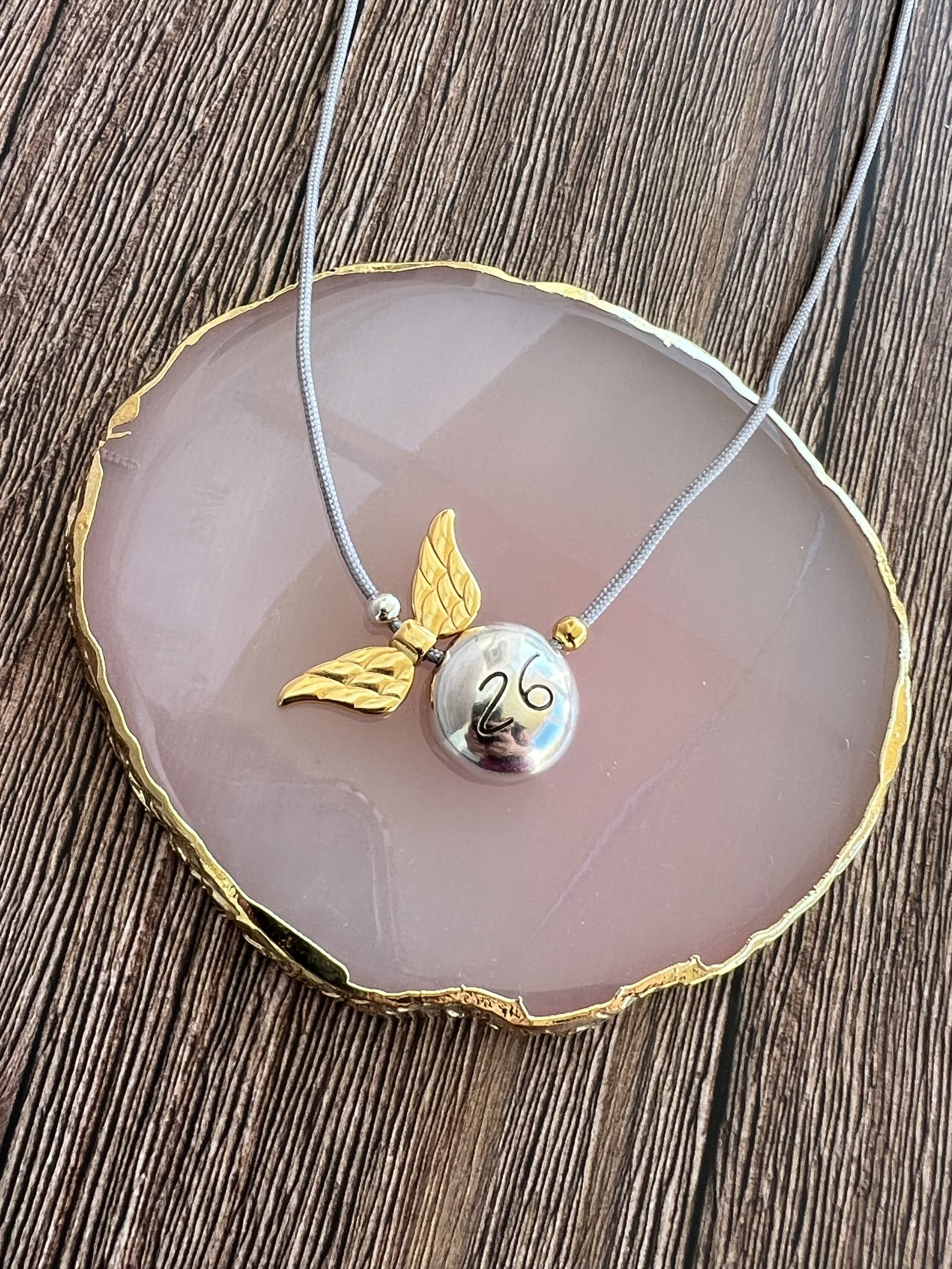 Κολιέ γούρι 2026 φτερά αγγέλου με γκρι κορδόνι