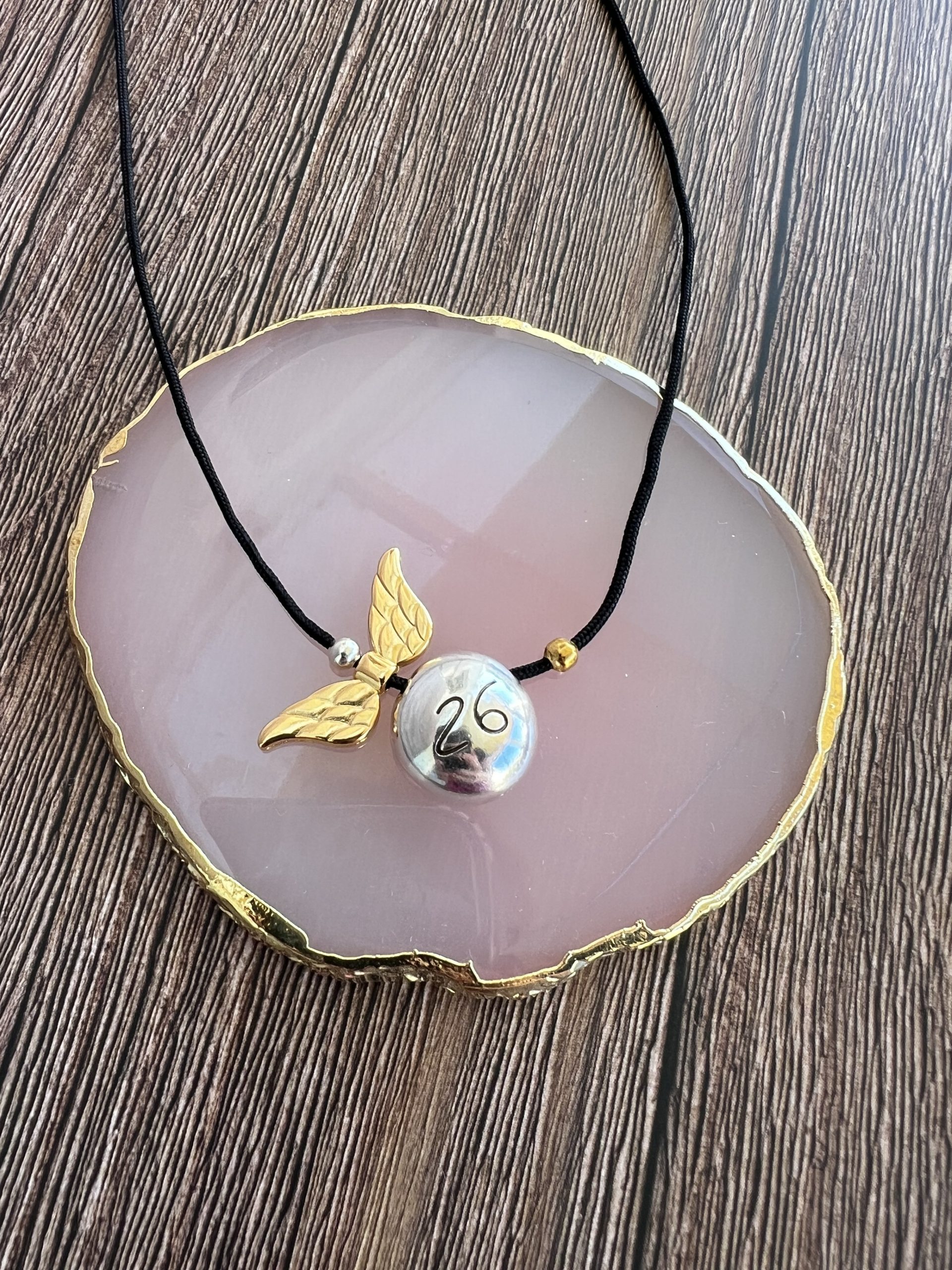 Κολιέ γούρι 2026 φτερά αγγέλου με μαύρο κορδόνι