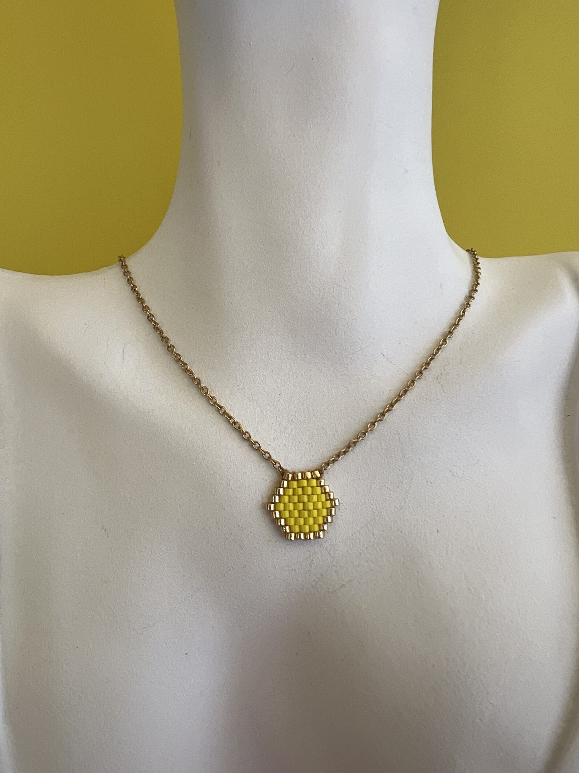 Κολιέ κίτρινο πολύγωνο κεντημένο με χάντρες Miyuki