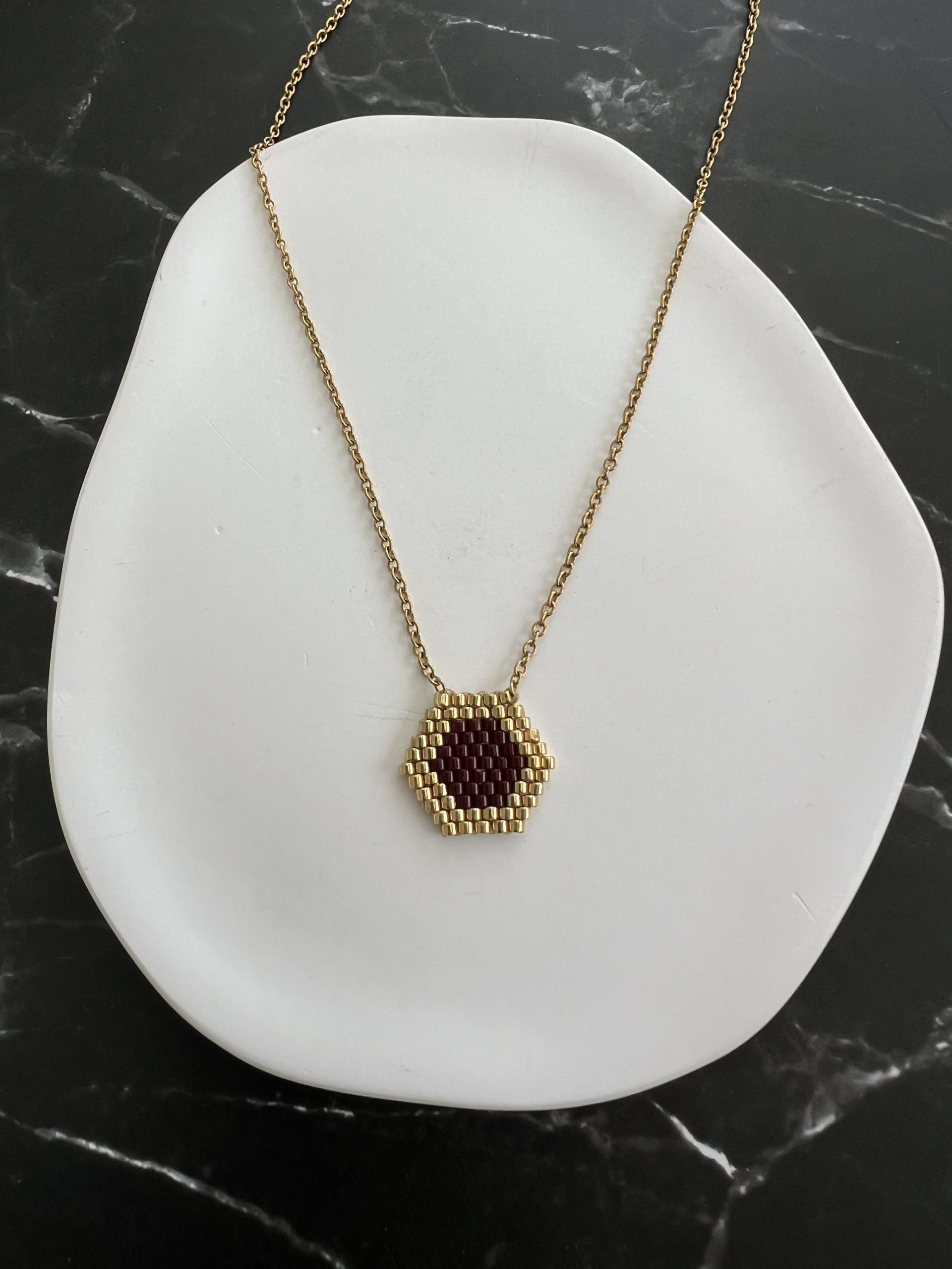 Κολιέ καφέ σκούρο πολύγωνο κεντημένο με χάντρες Miyuki