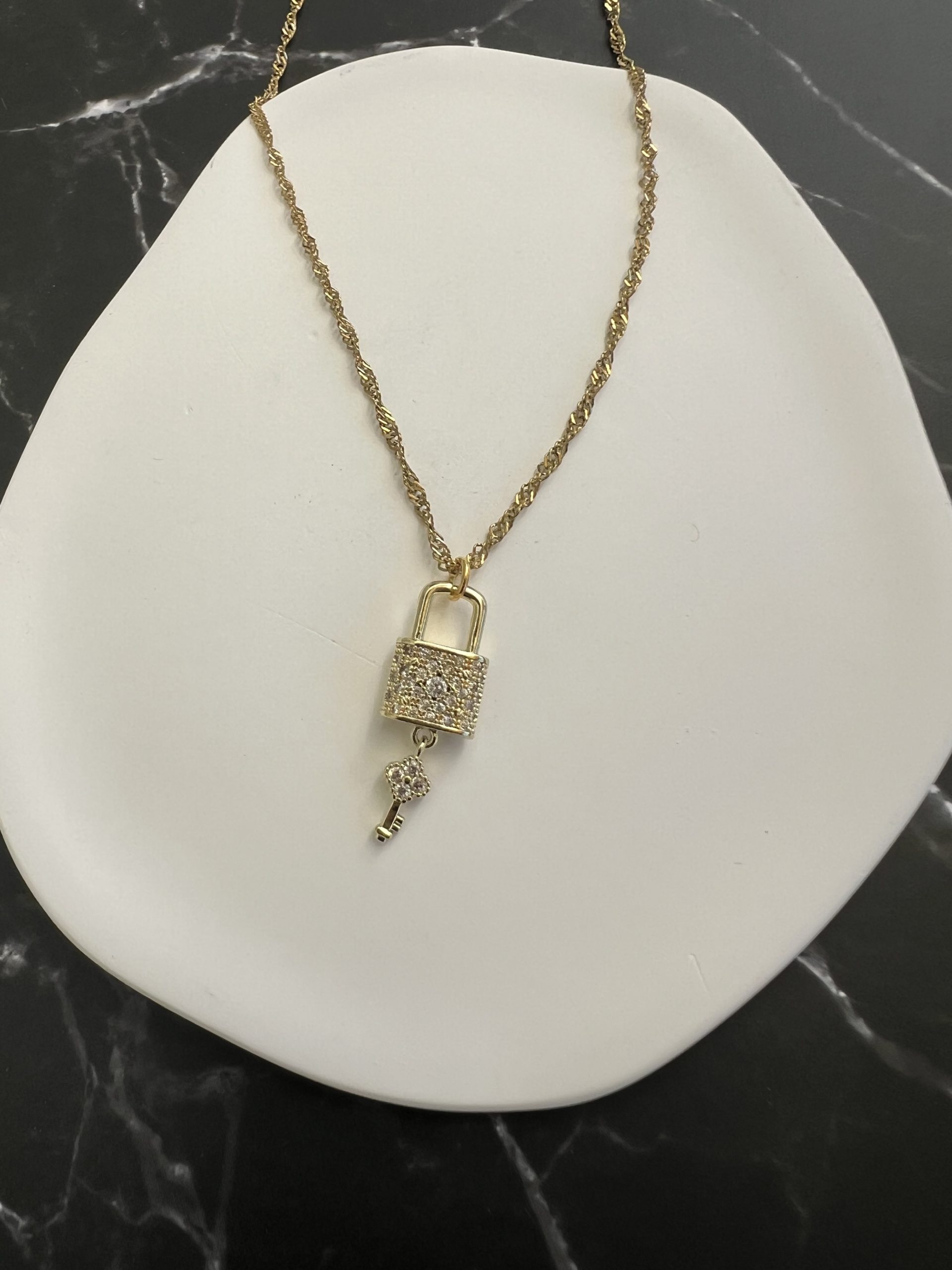 Κολιέ λουκέτο και κλειδί με ζιργκόν και χρυσή αλυσίδα