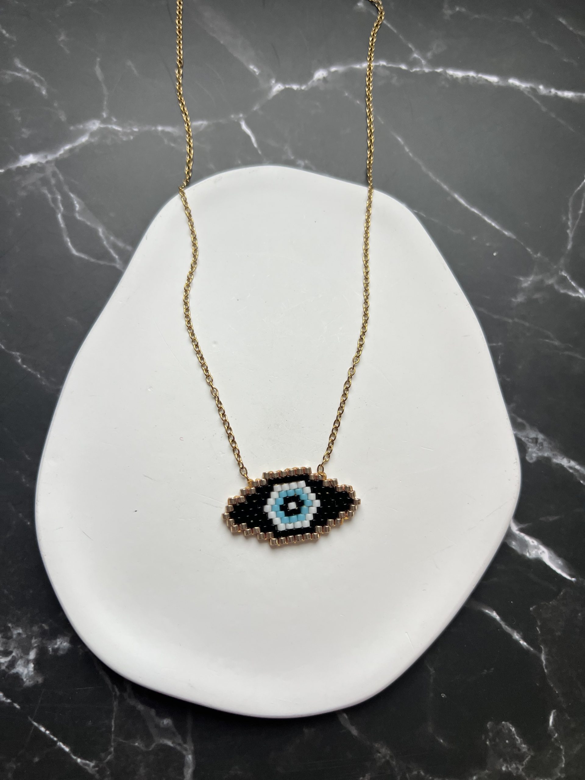 Κολιέ μαύρο μάτι κεντημένο με χάντρες Miyuki