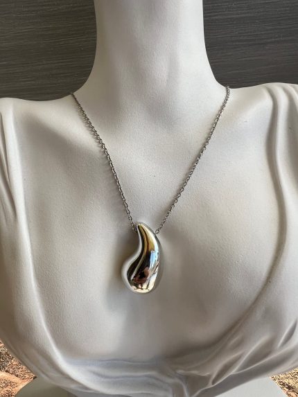 Κολιέ ασημί σταγόνα με μαύρο κορδόνι