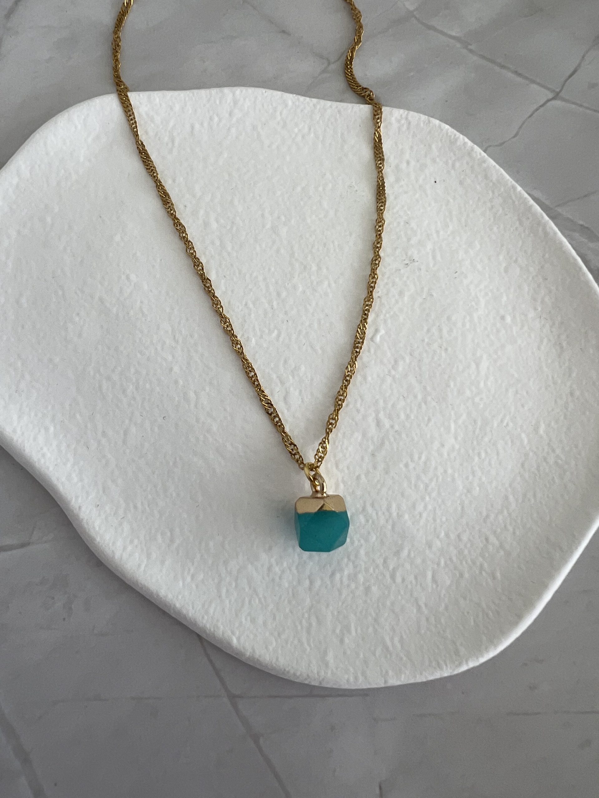 Κολιέ με τυρκουάζ πέτρα και χρυσή αλυσίδα