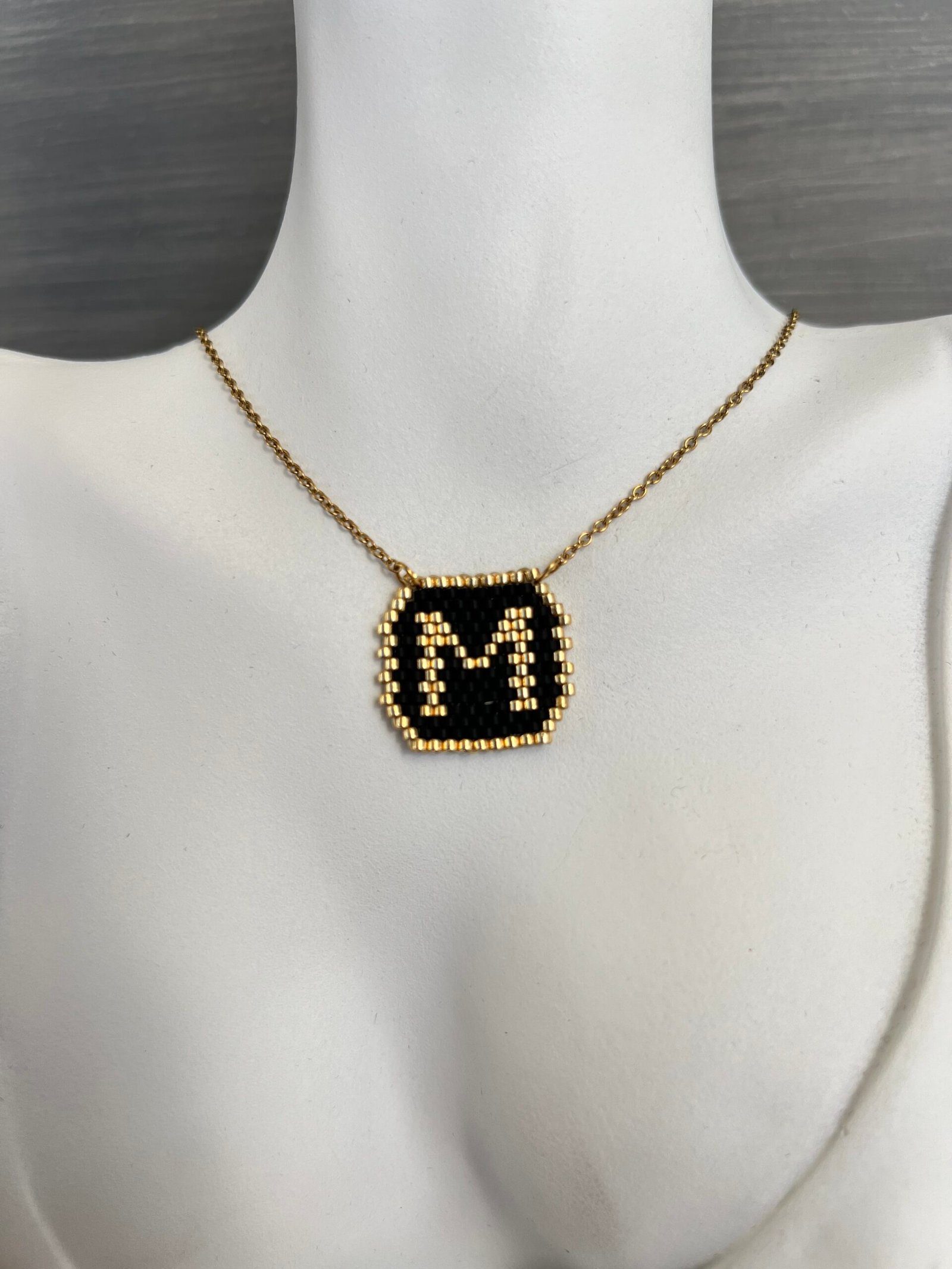 Κολιέ μονόγραμμα Μ κεντημένο με χάντρες Miyuki