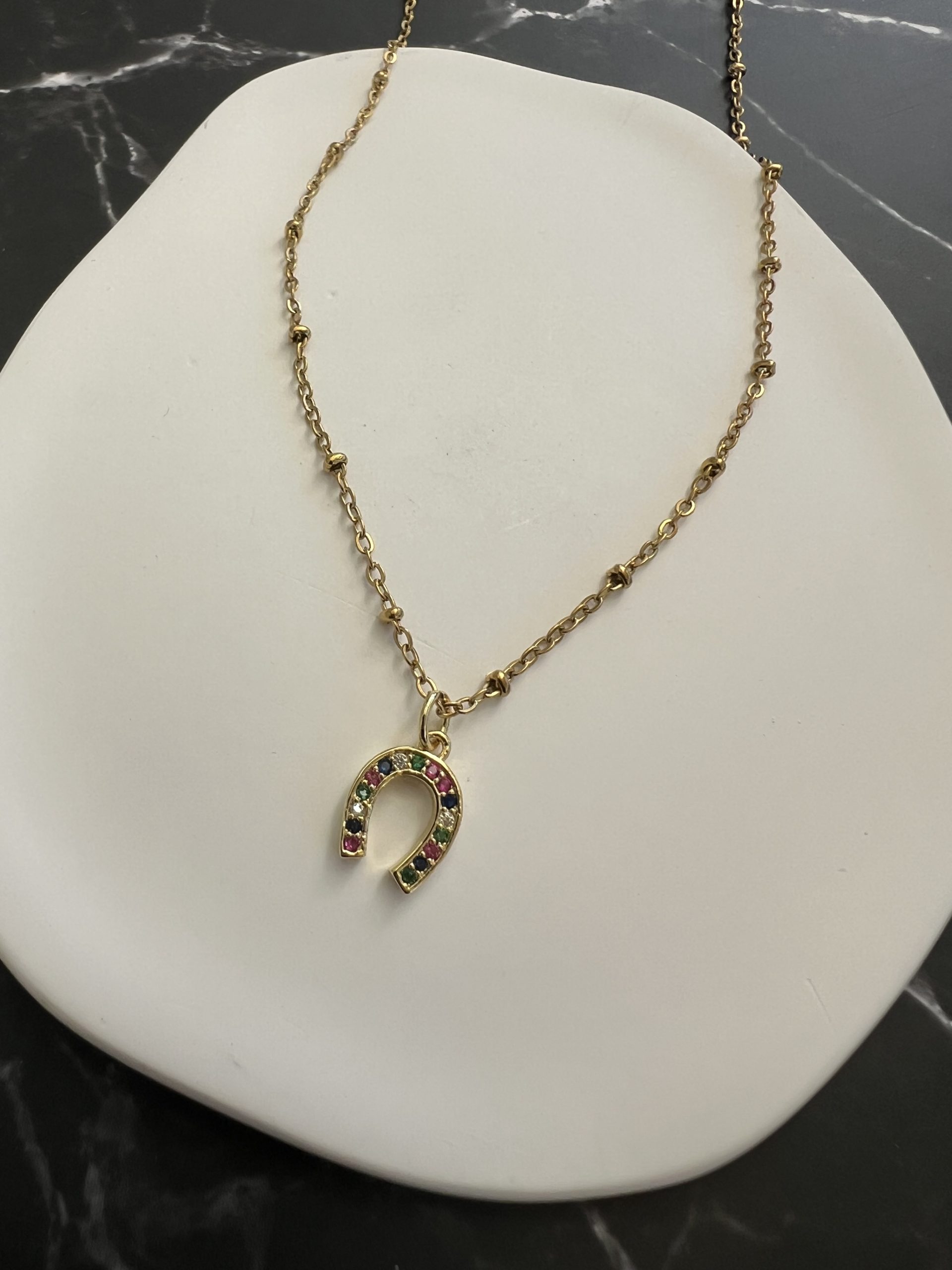 Κολιέ πέταλο με πολύχρωμα ζιργκόν και χρυσή αλυσίδα