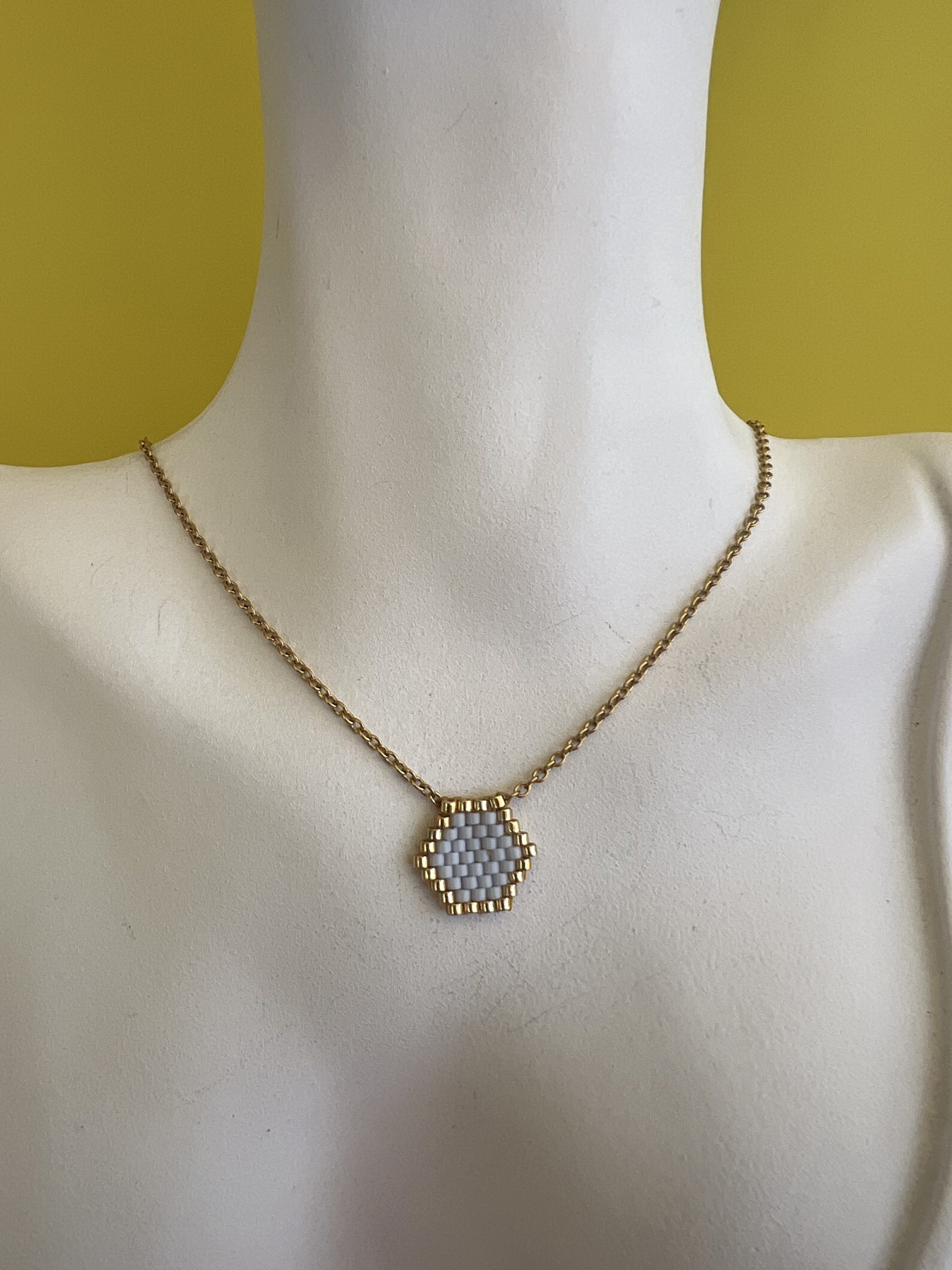 Κολιέ σιέλ πολύγωνο κεντημένο με χάντρες Miyuki