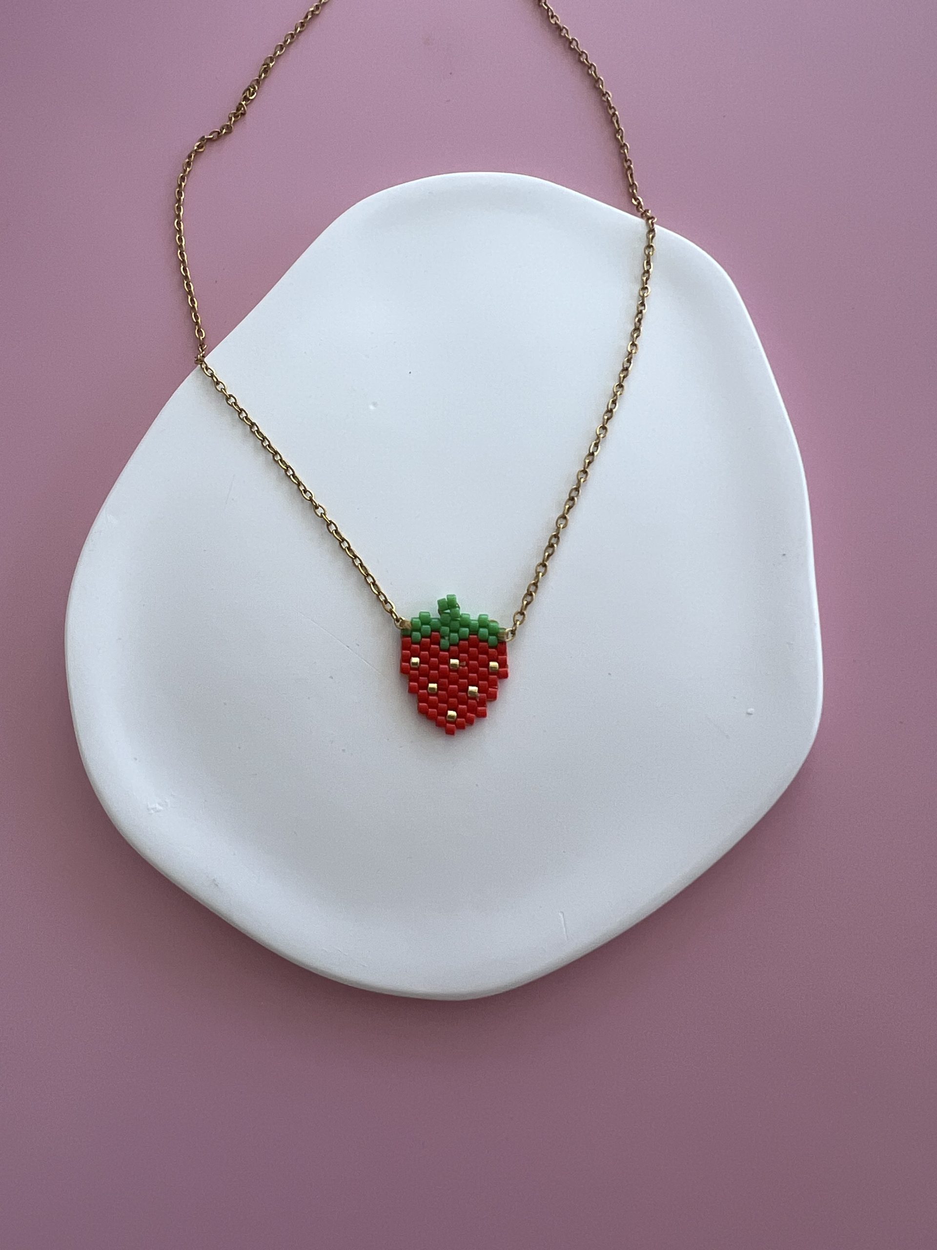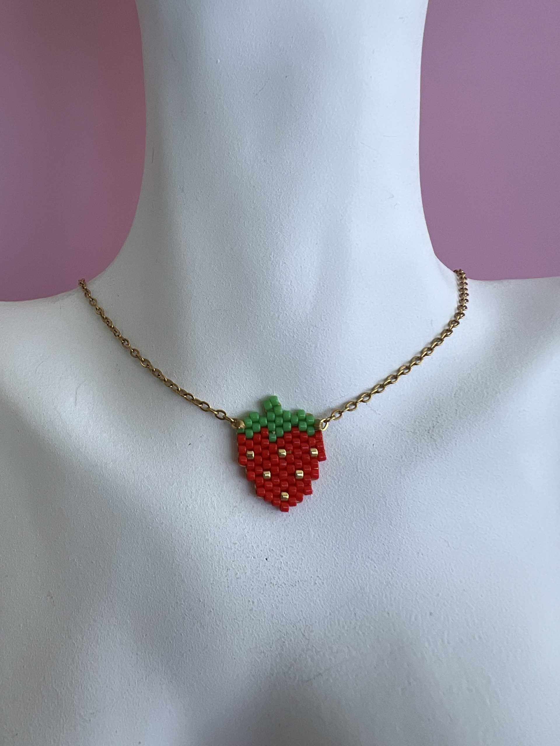 Κολιέ φράουλα κεντημένη με χάντρες Miyuki