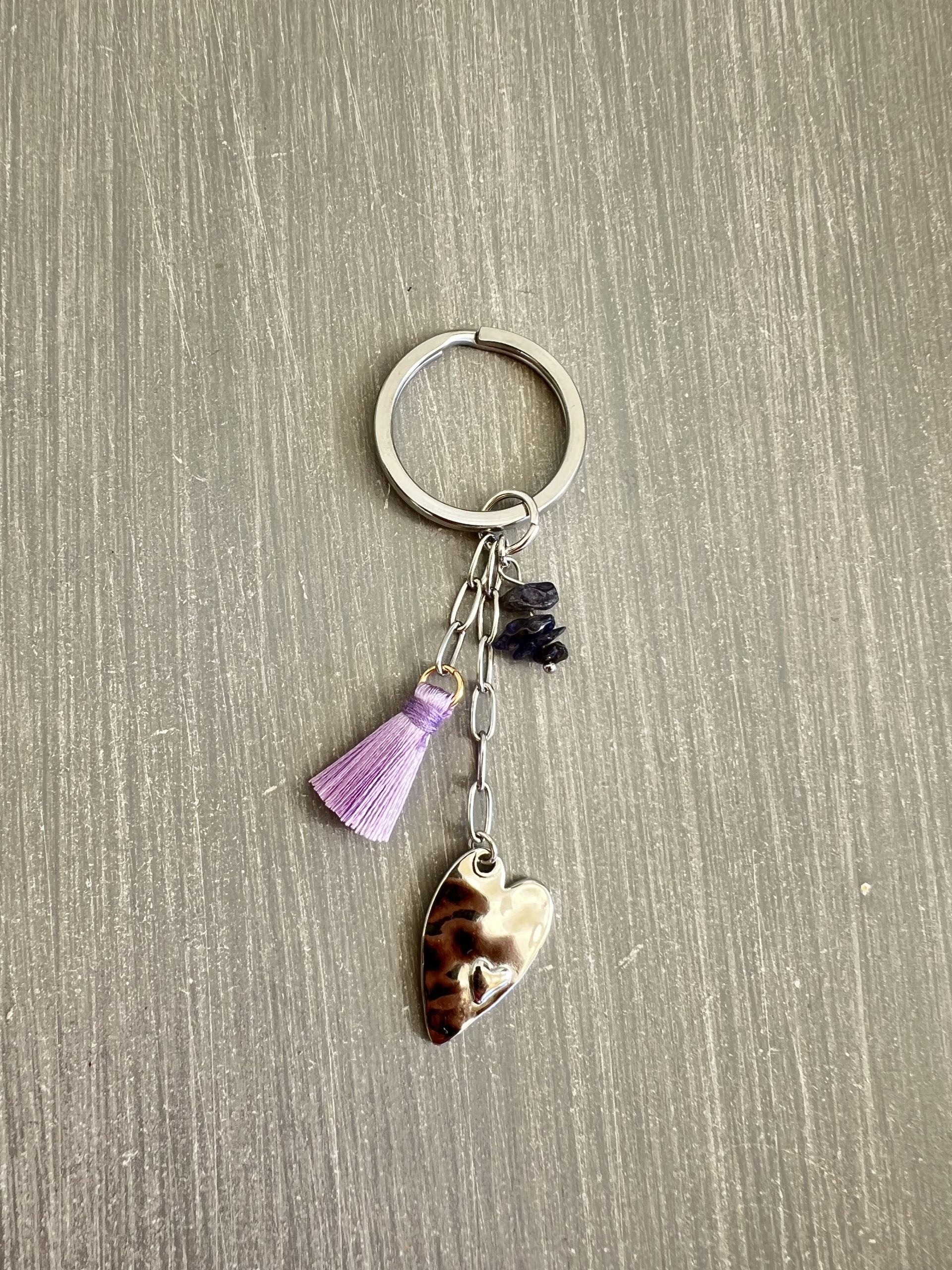 Μπρελόκ καρδιά με ημιπολύτιμες πέτρες και μωβ φούντα