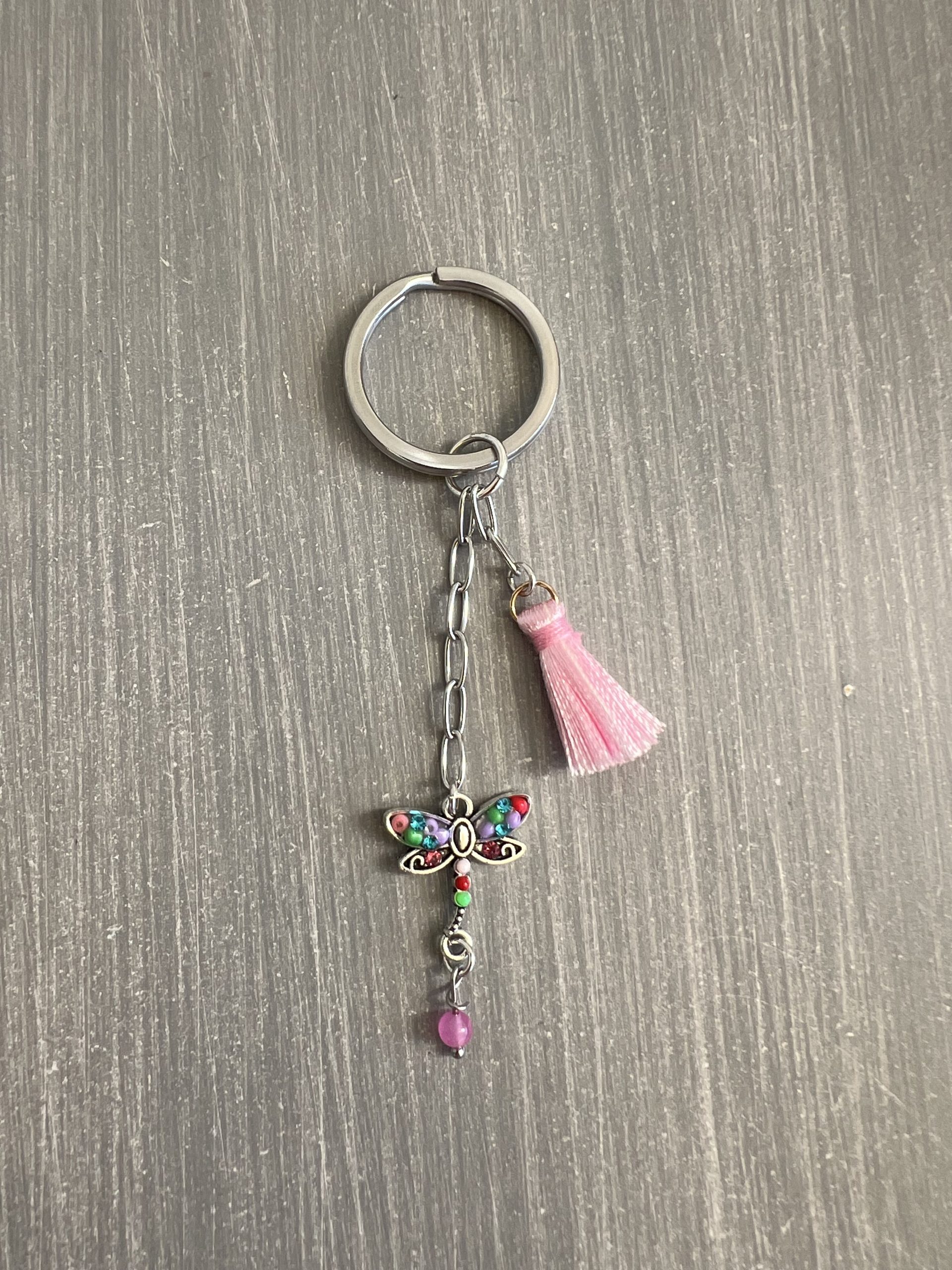 Μπρελόκ λιβελούλα με ροζ φούντα