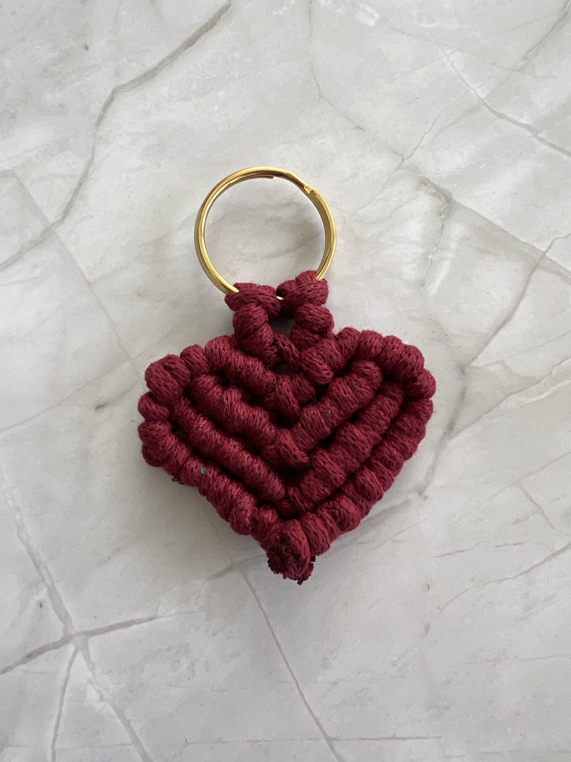 Μπρελόκ μπορντώ καρδιά μακραμέ