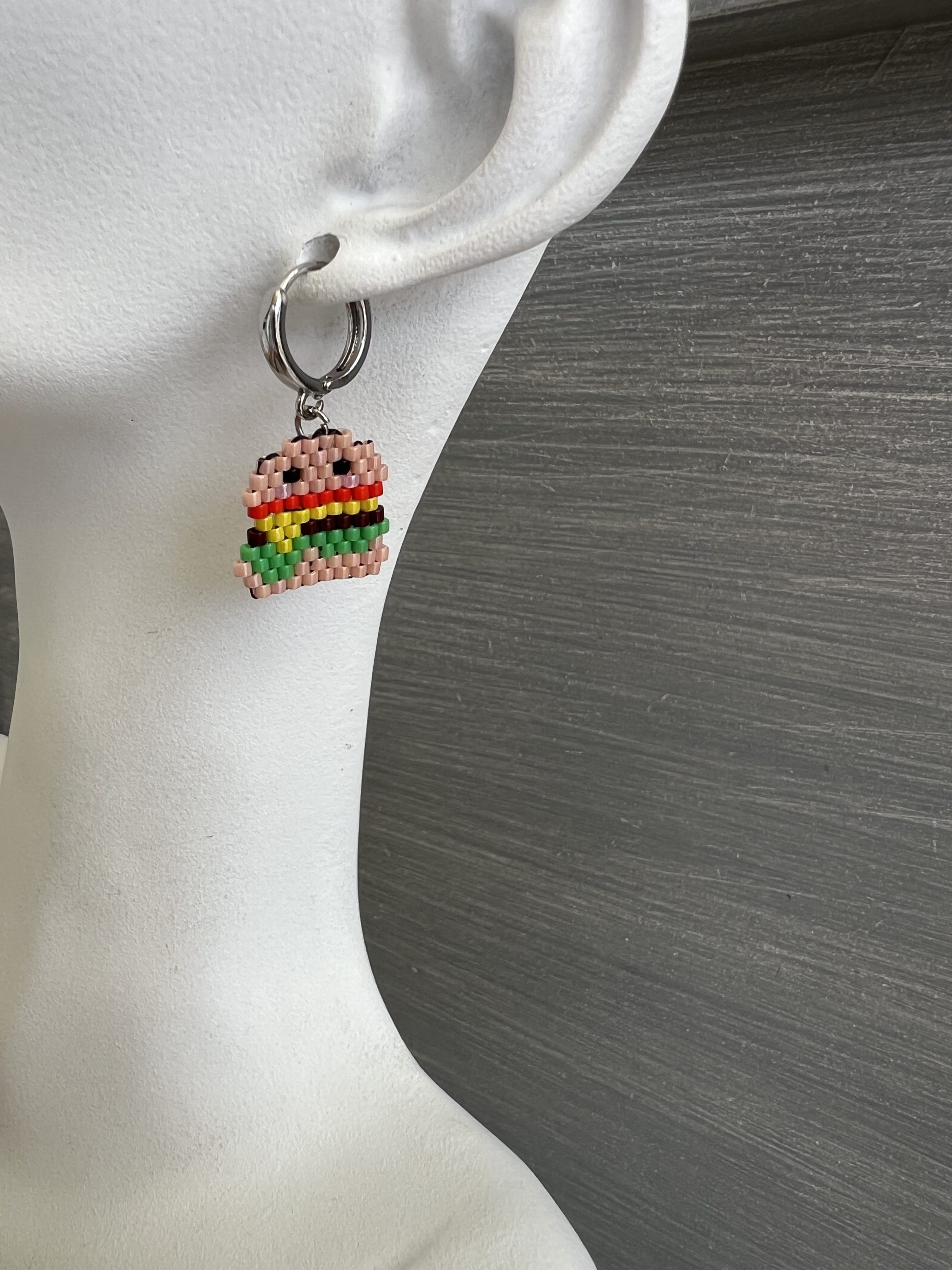 Σκουλαρίκια burger & πατάτες κεντημένα με χάντρες Miyuki