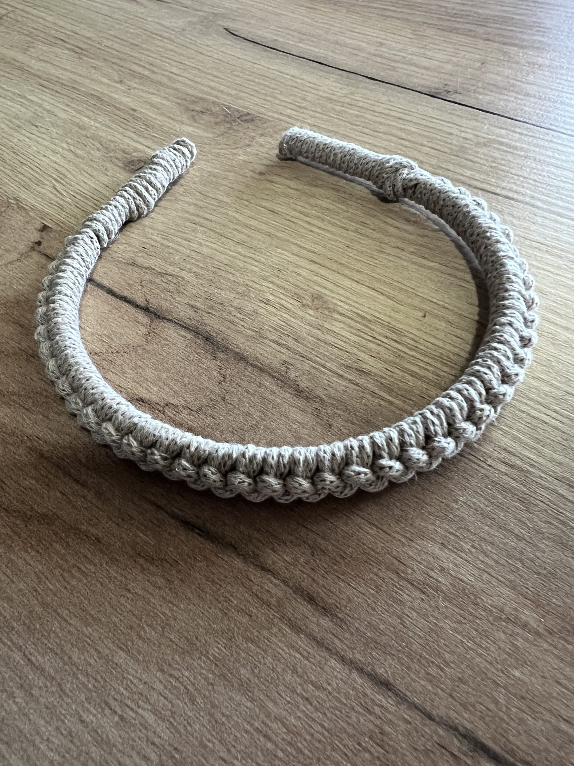 Στέκα για τα μαλλιά μακραμέ σε μπεζ σκούρο χρώμα