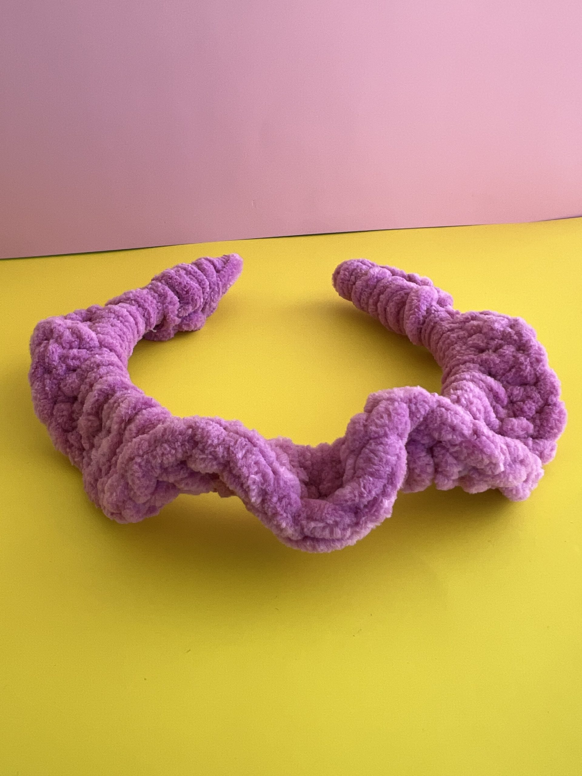 Στέκα για τα μαλλιά μωβ πλεκτή βελουτέ