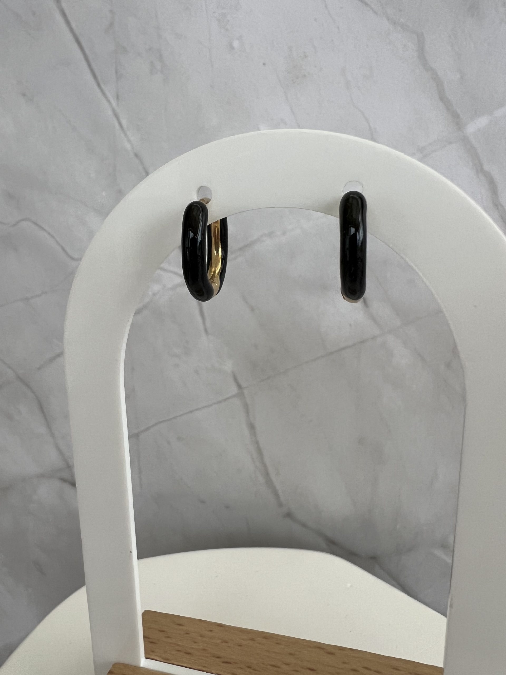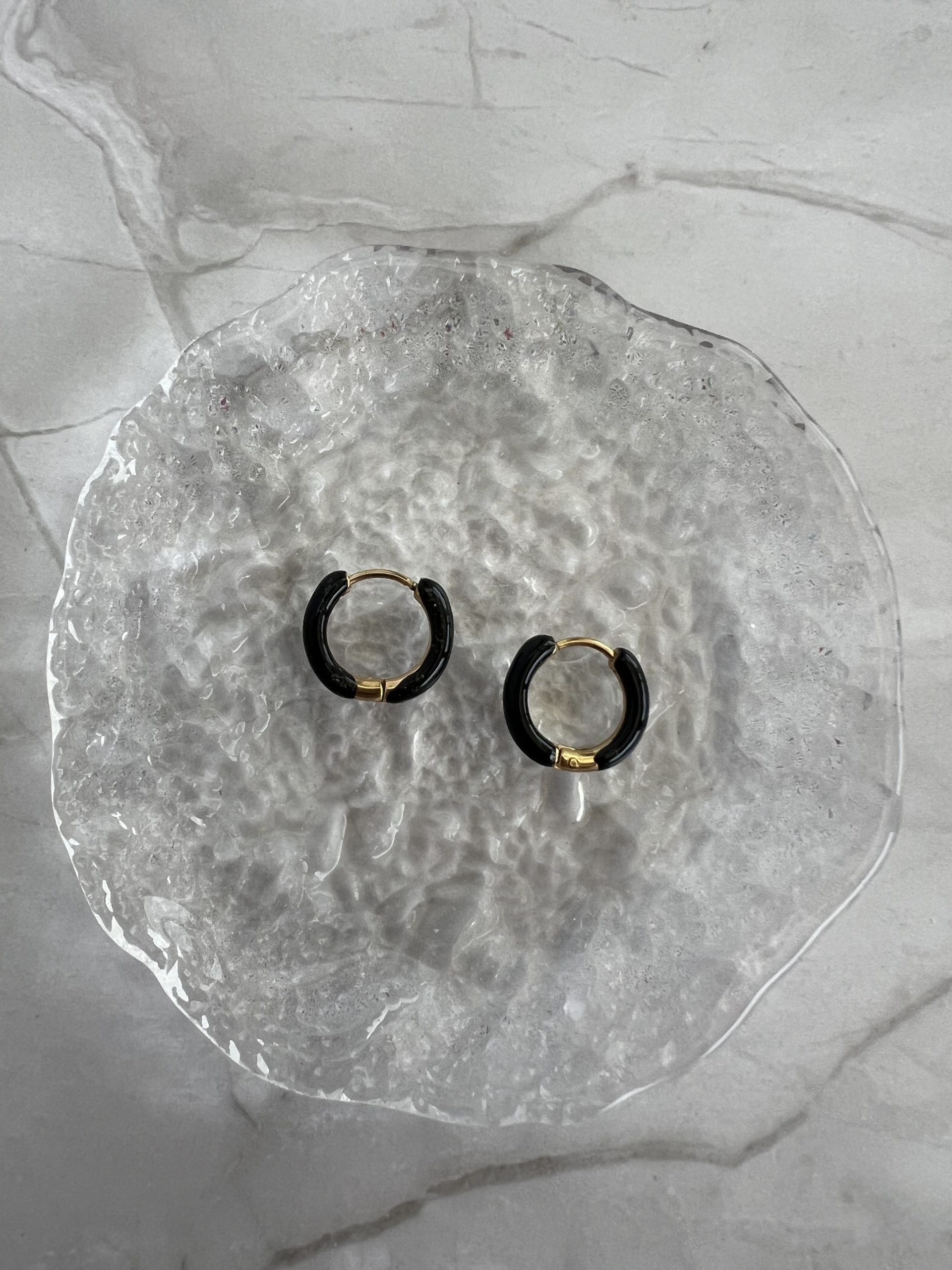 Χρυσοί κρίκοι με μαύρο σμάλτο
