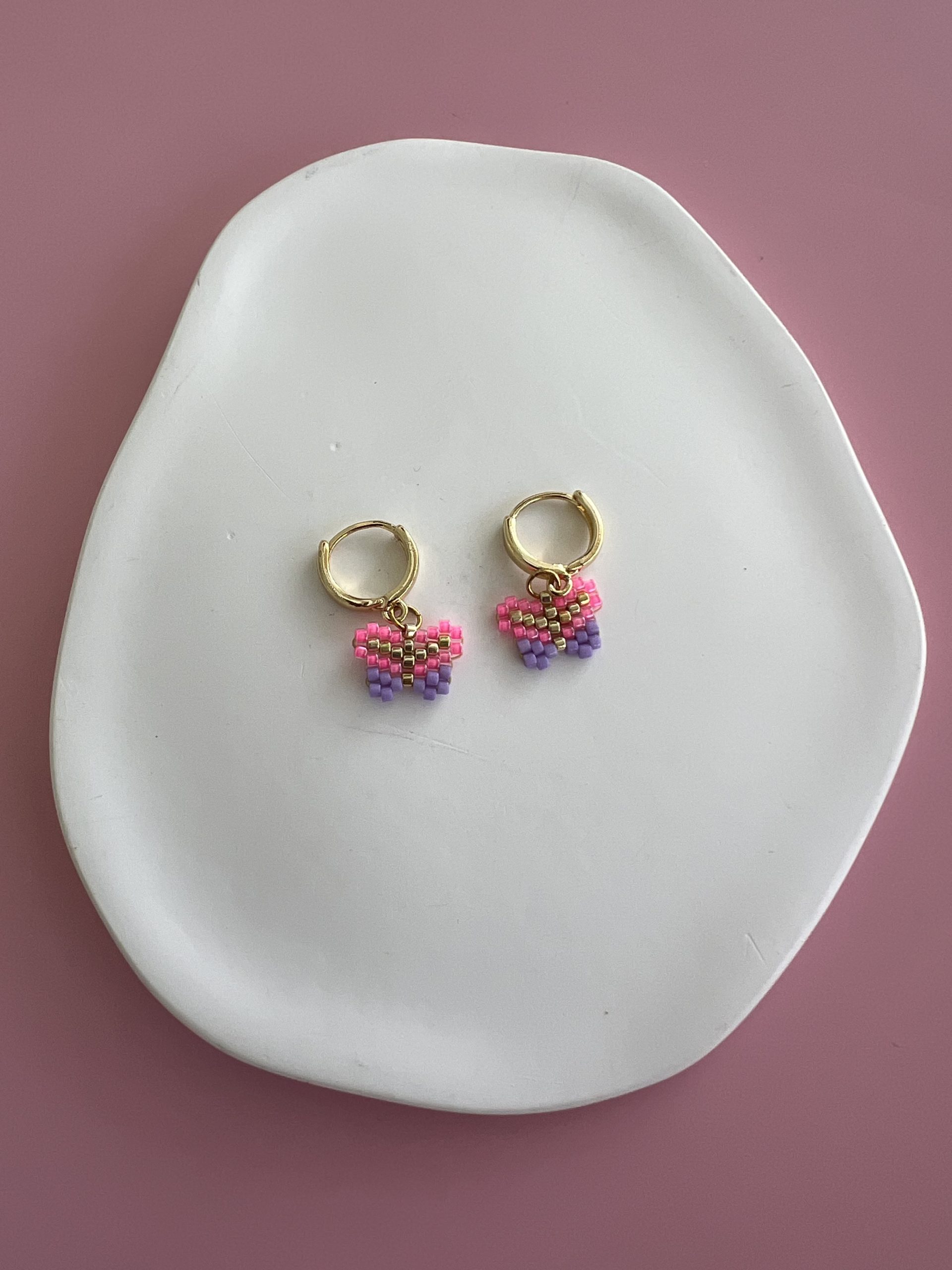 Χρυσοί κρίκοι πεταλούδες κεντημένοι με χάντρες Miyuki