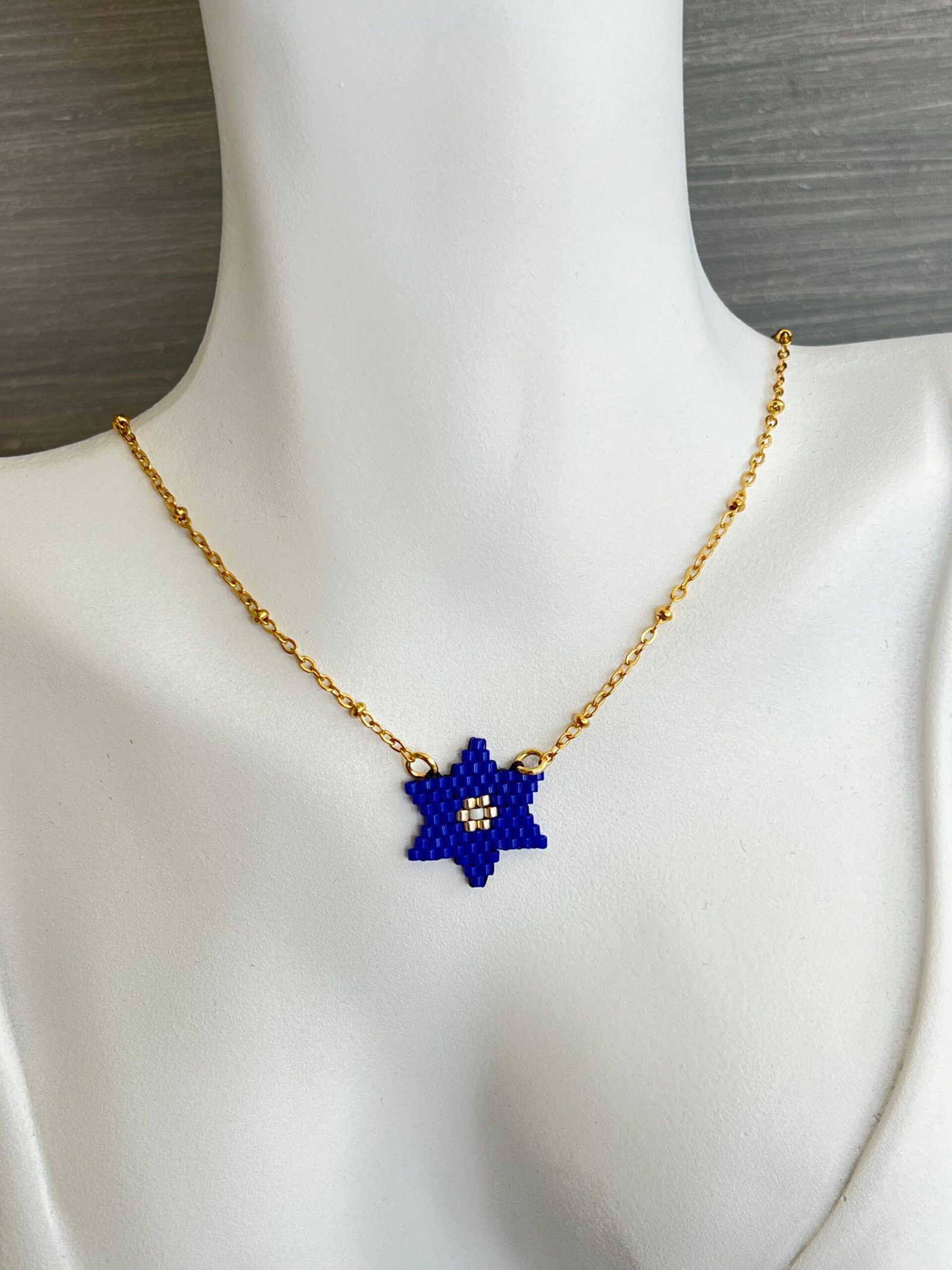 Χρυσό κολιέ μπλε αστέρι κεντημένο με χάντρες Miyuki