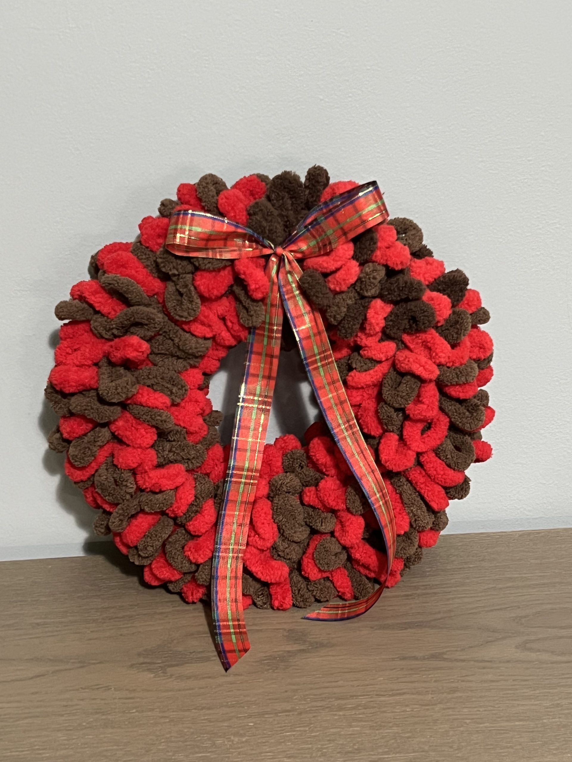 Puffy διακοσμητικό Χριστουγεννιάτικο στεφάνι καφέ – κόκκινο