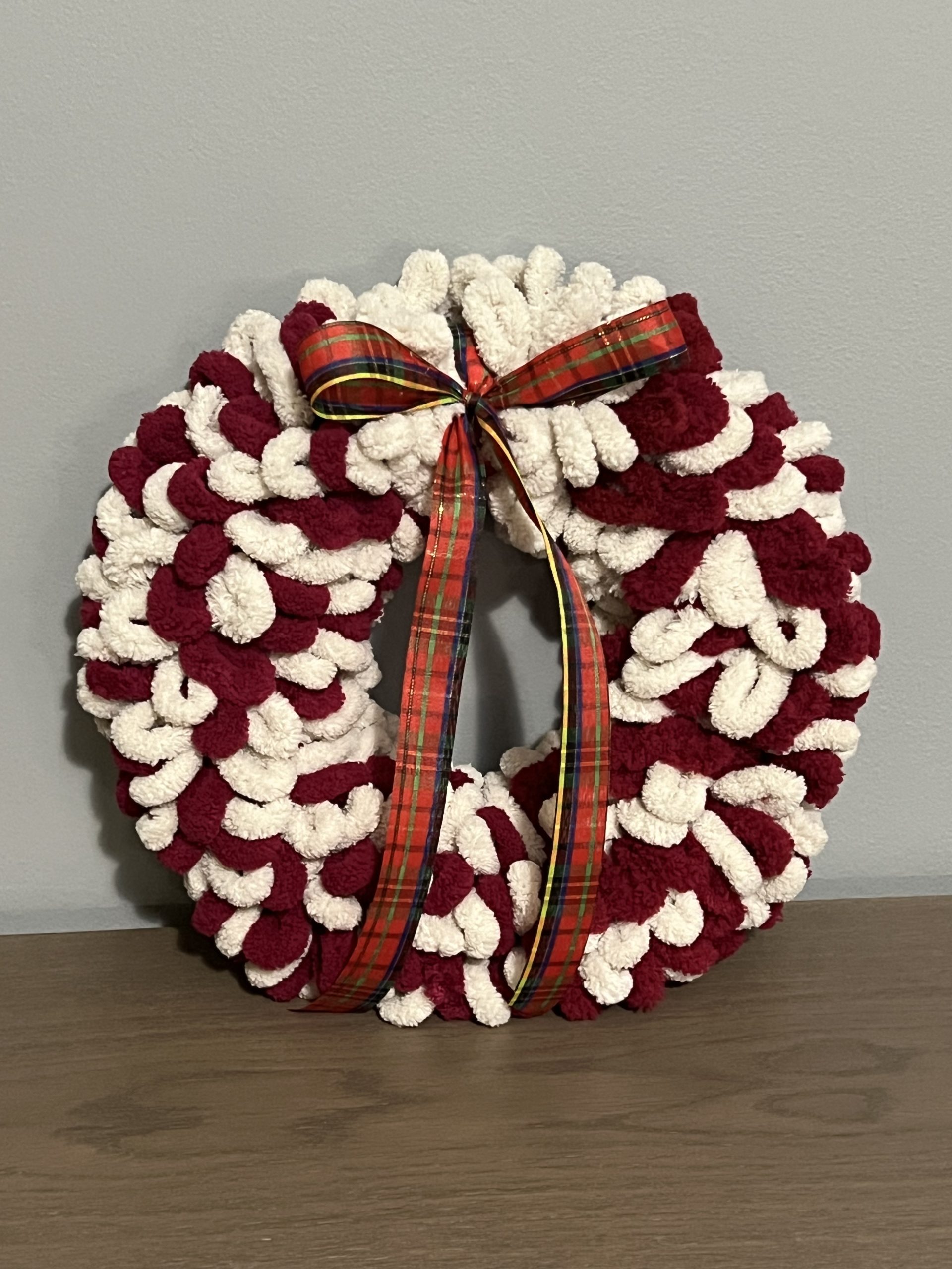 Puffy διακοσμητικό Χριστουγεννιάτικο στεφάνι μπεζ – μπορντώ