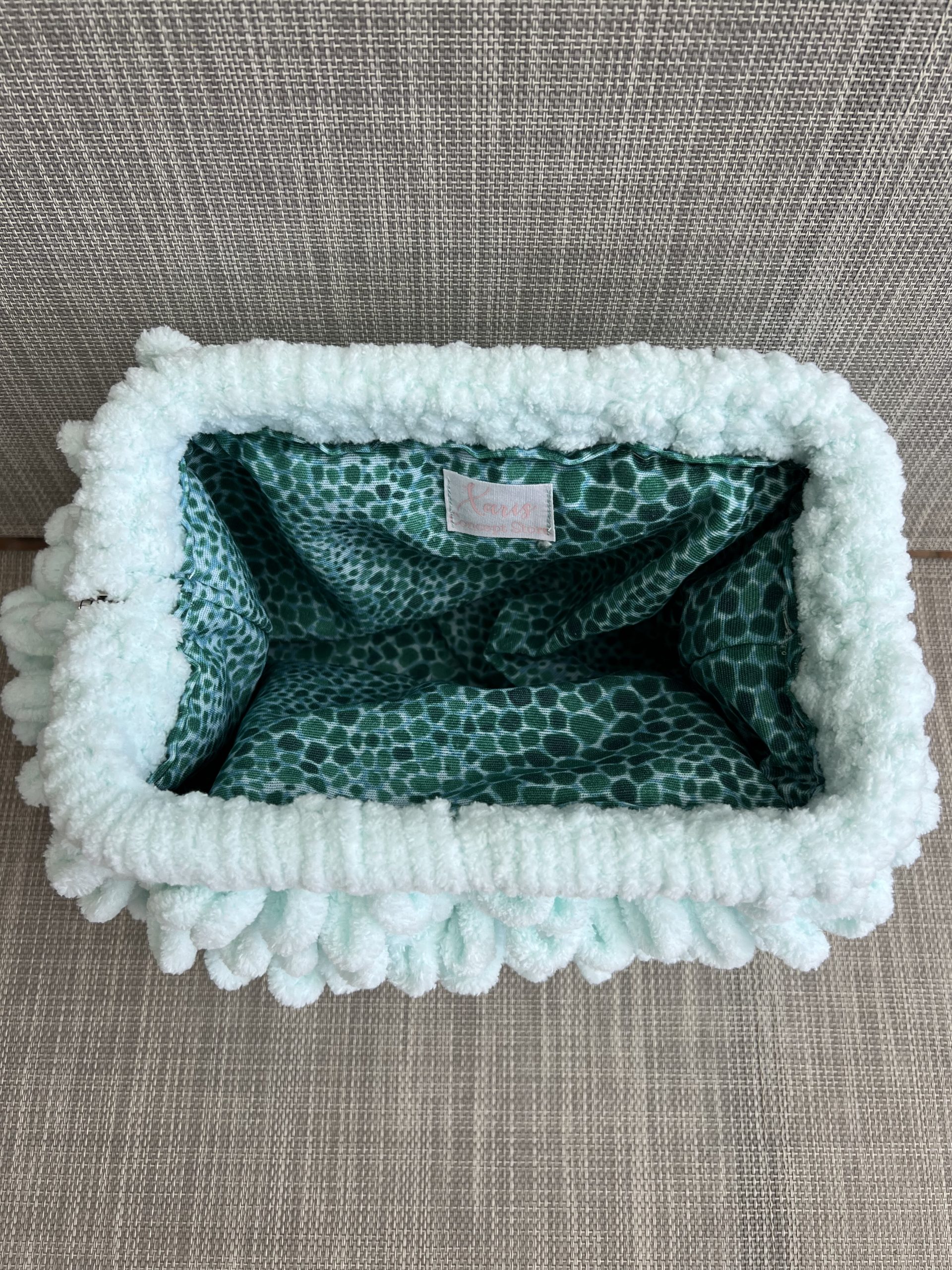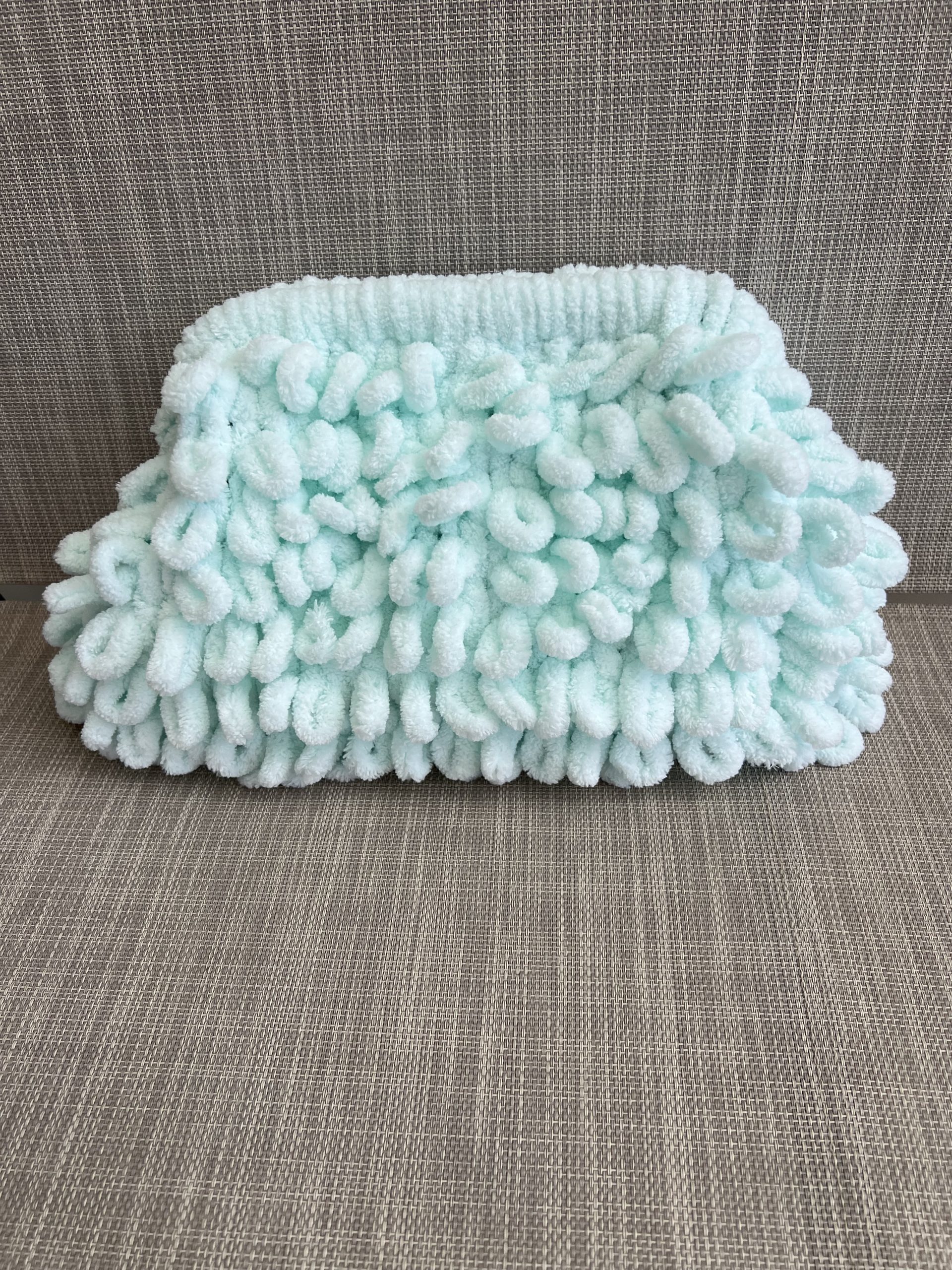 Χνουδωτή χειροποίητη τσάντα τύπου clutch.
