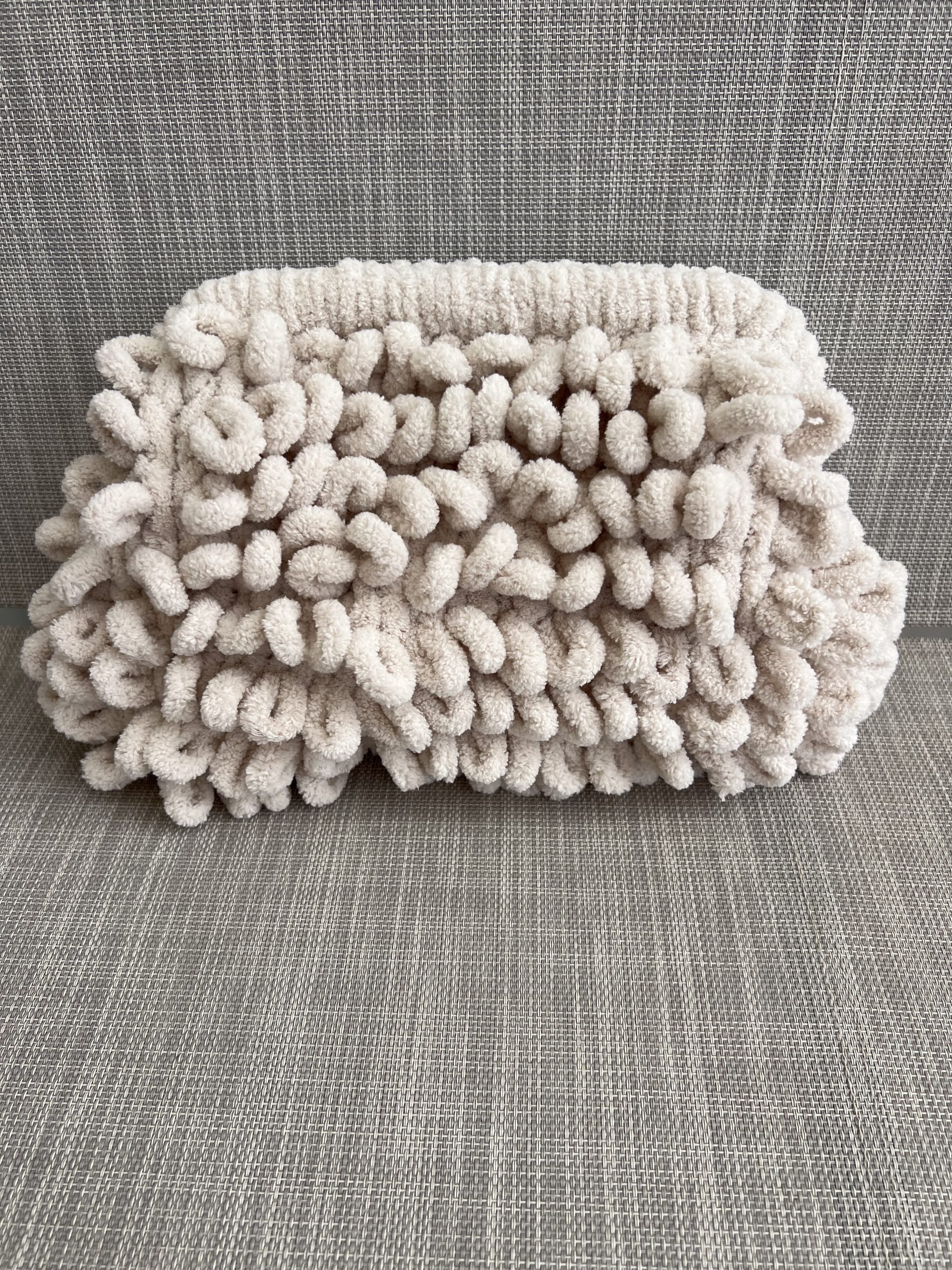 Χνουδωτή χειροποίητη τσάντα τύπου clutch.