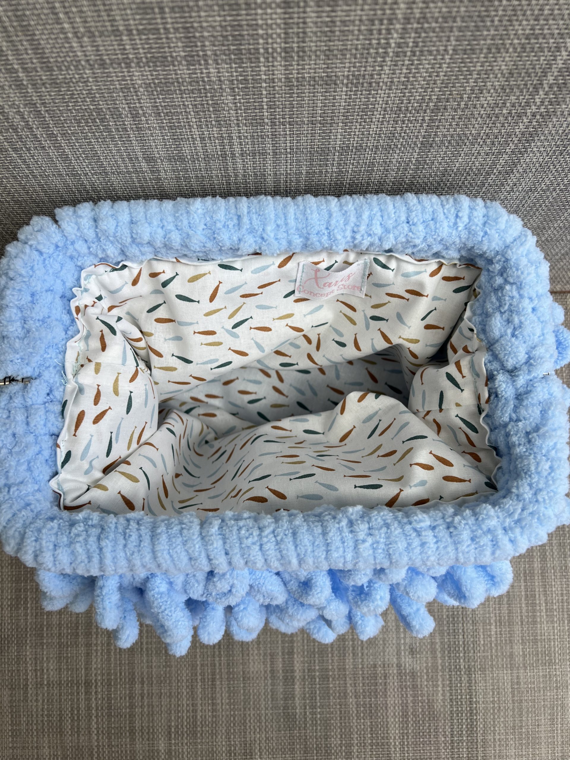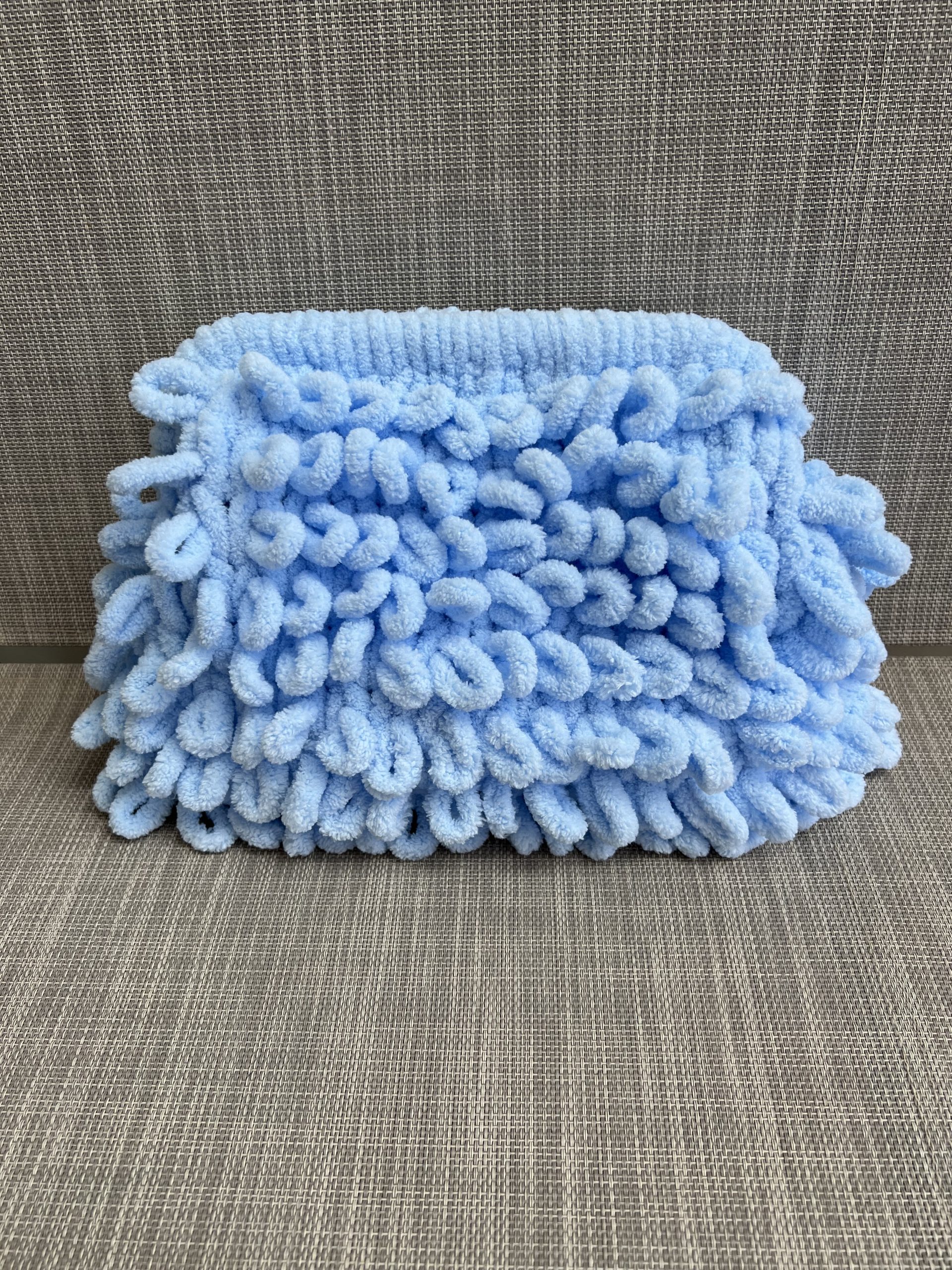 Χνουδωτή χειροποίητη τσάντα τύπου clutch.