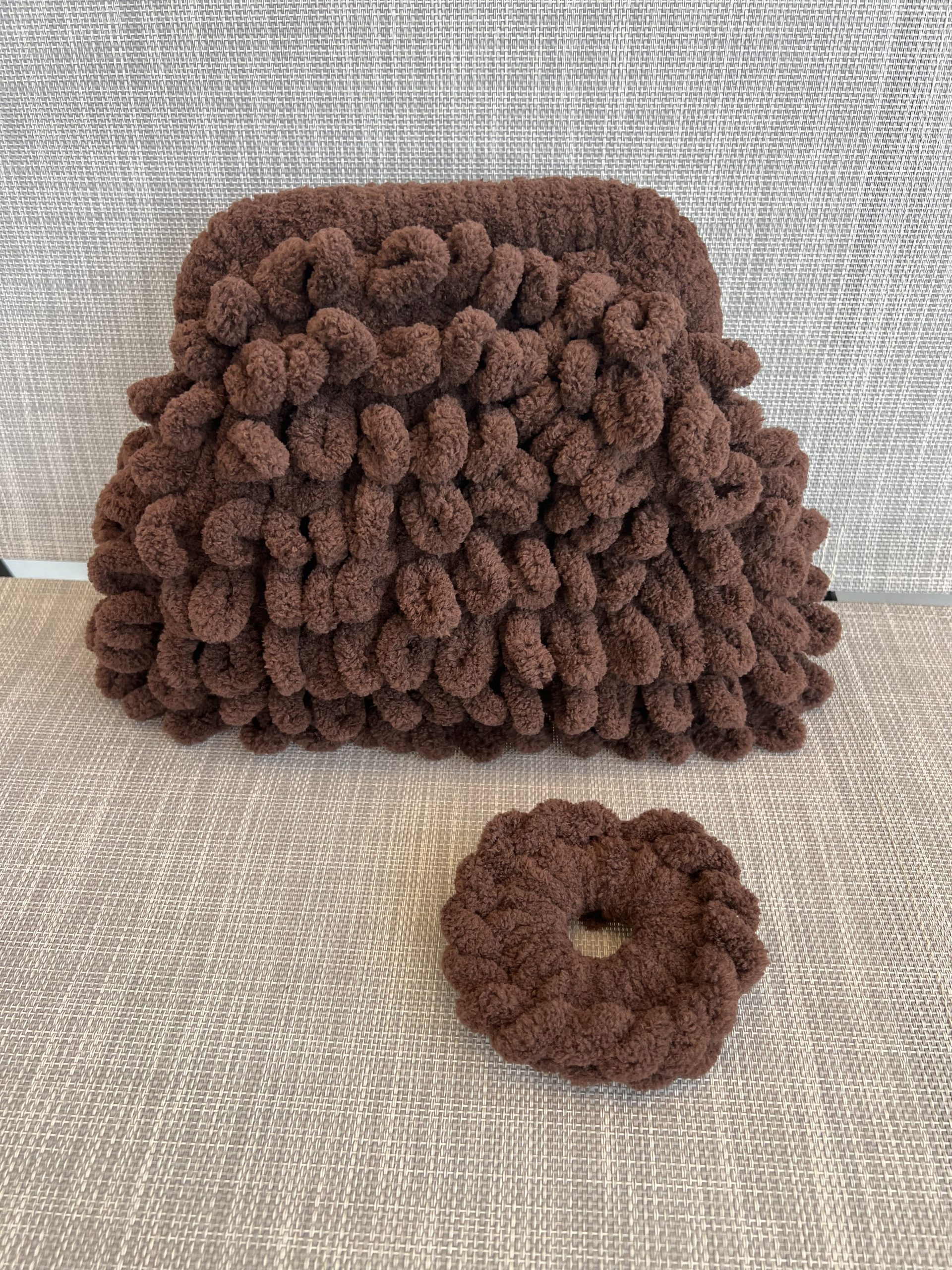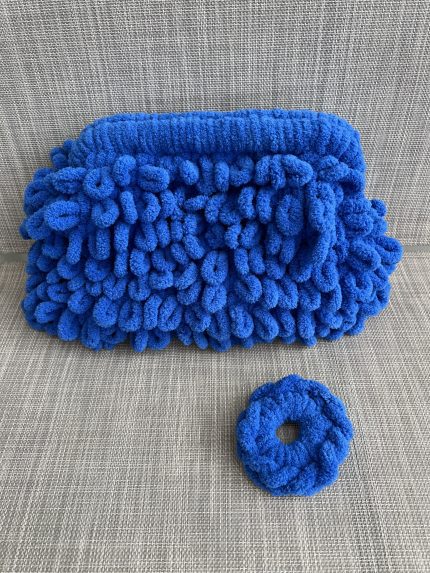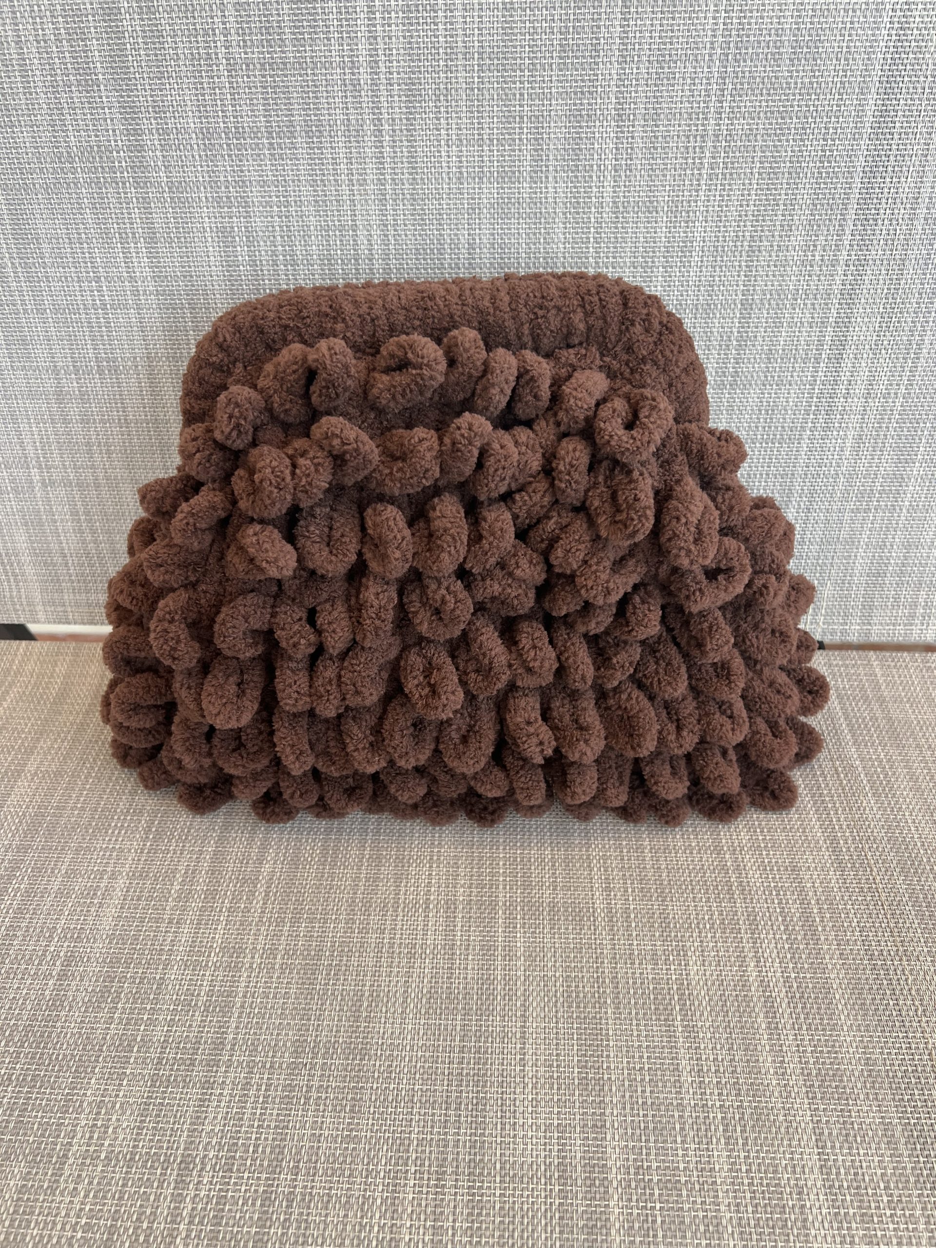 Χνουδωτή χειροποίητη τσάντα τύπου clutch.