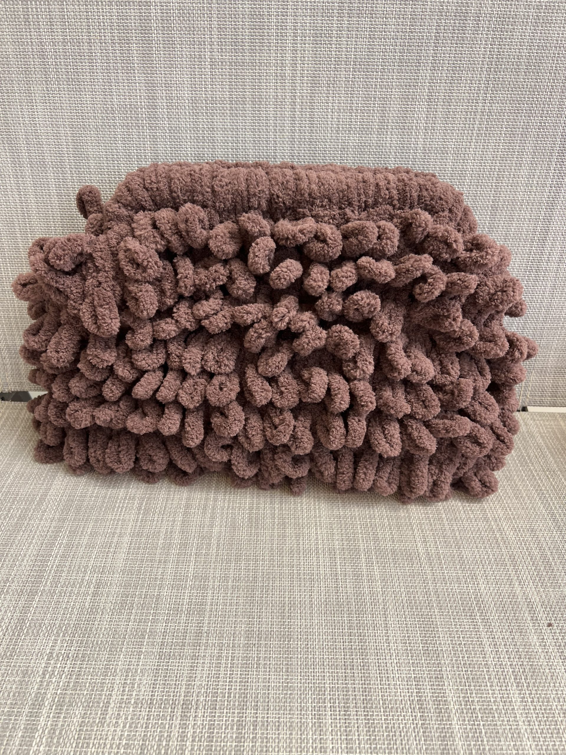 Χνουδωτή χειροποίητη τσάντα τύπου clutch.
