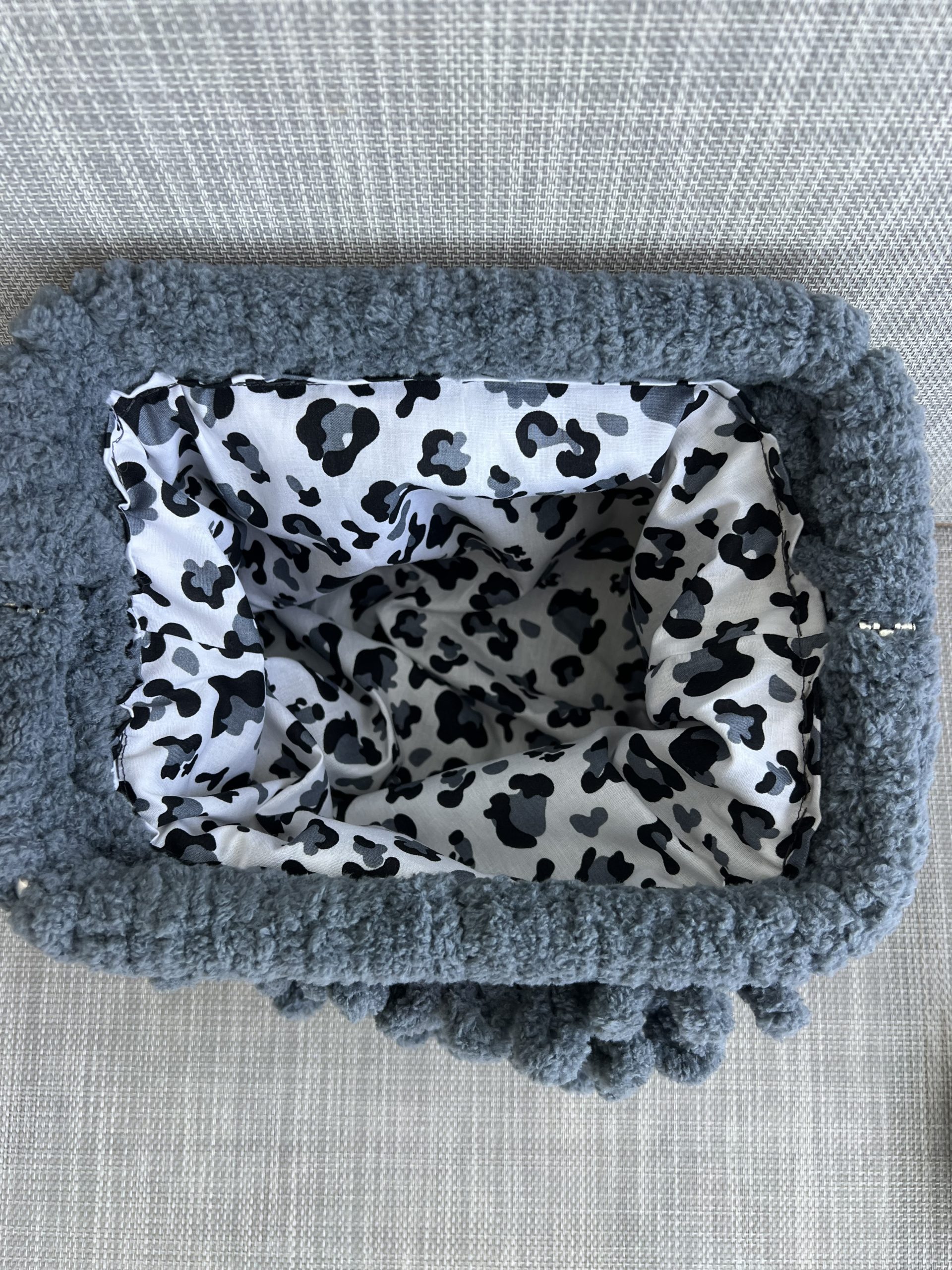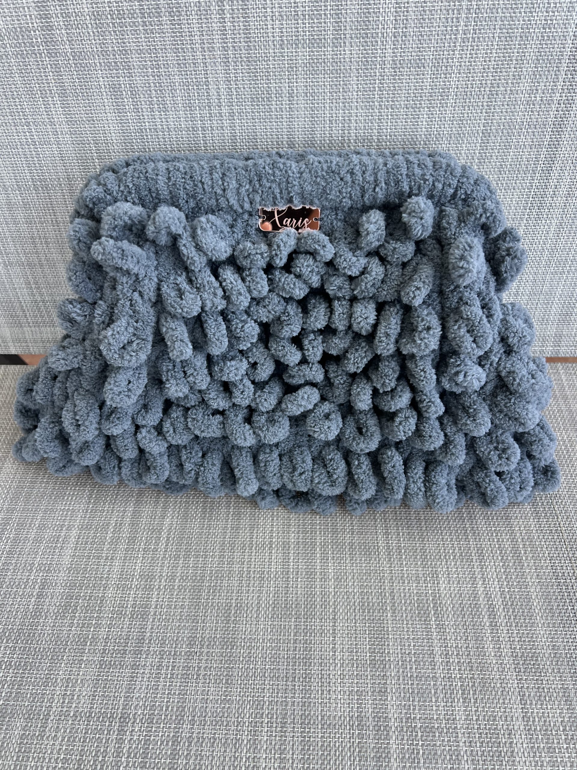 Χνουδωτή χειροποίητη τσάντα τύπου clutch.