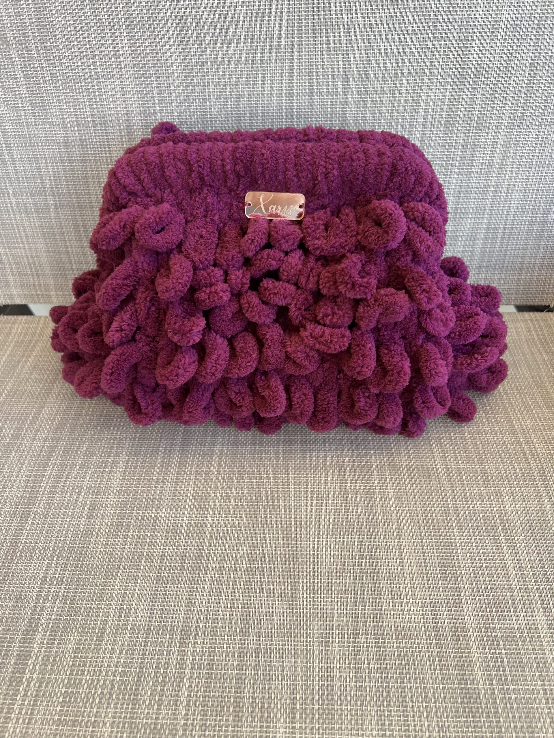 Χνουδωτή χειροποίητη τσάντα τύπου clutch.