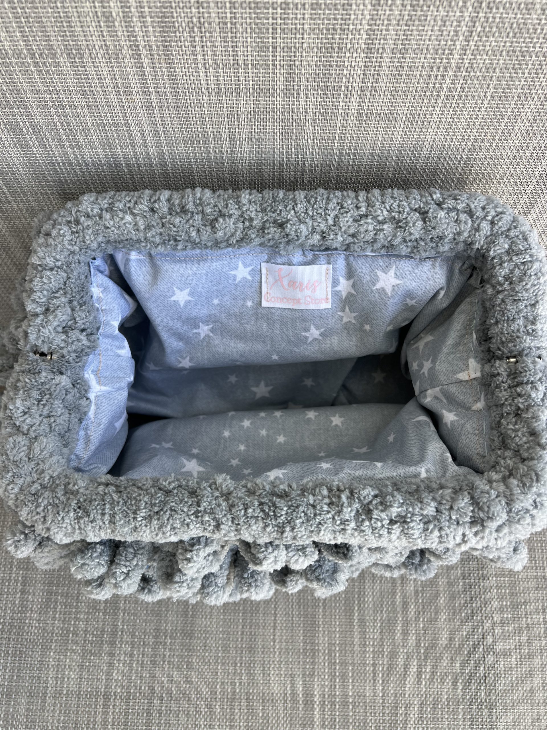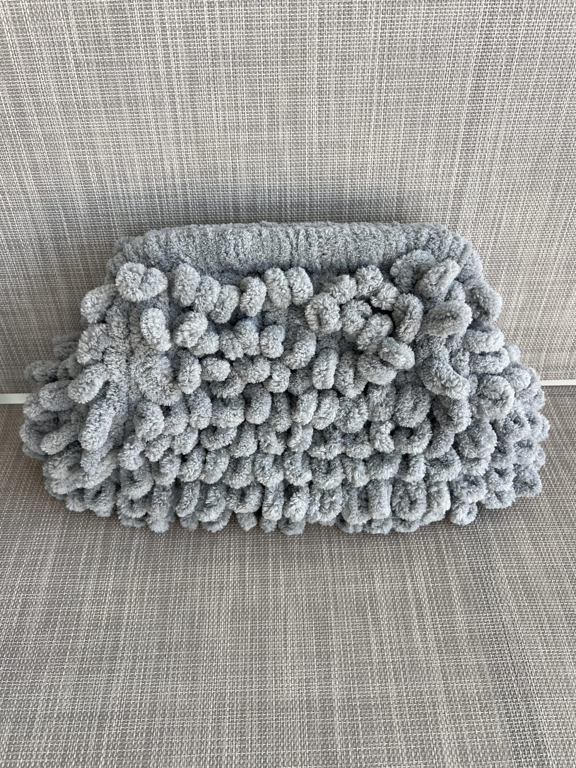 Χνουδωτή χειροποίητη τσάντα τύπου clutch.