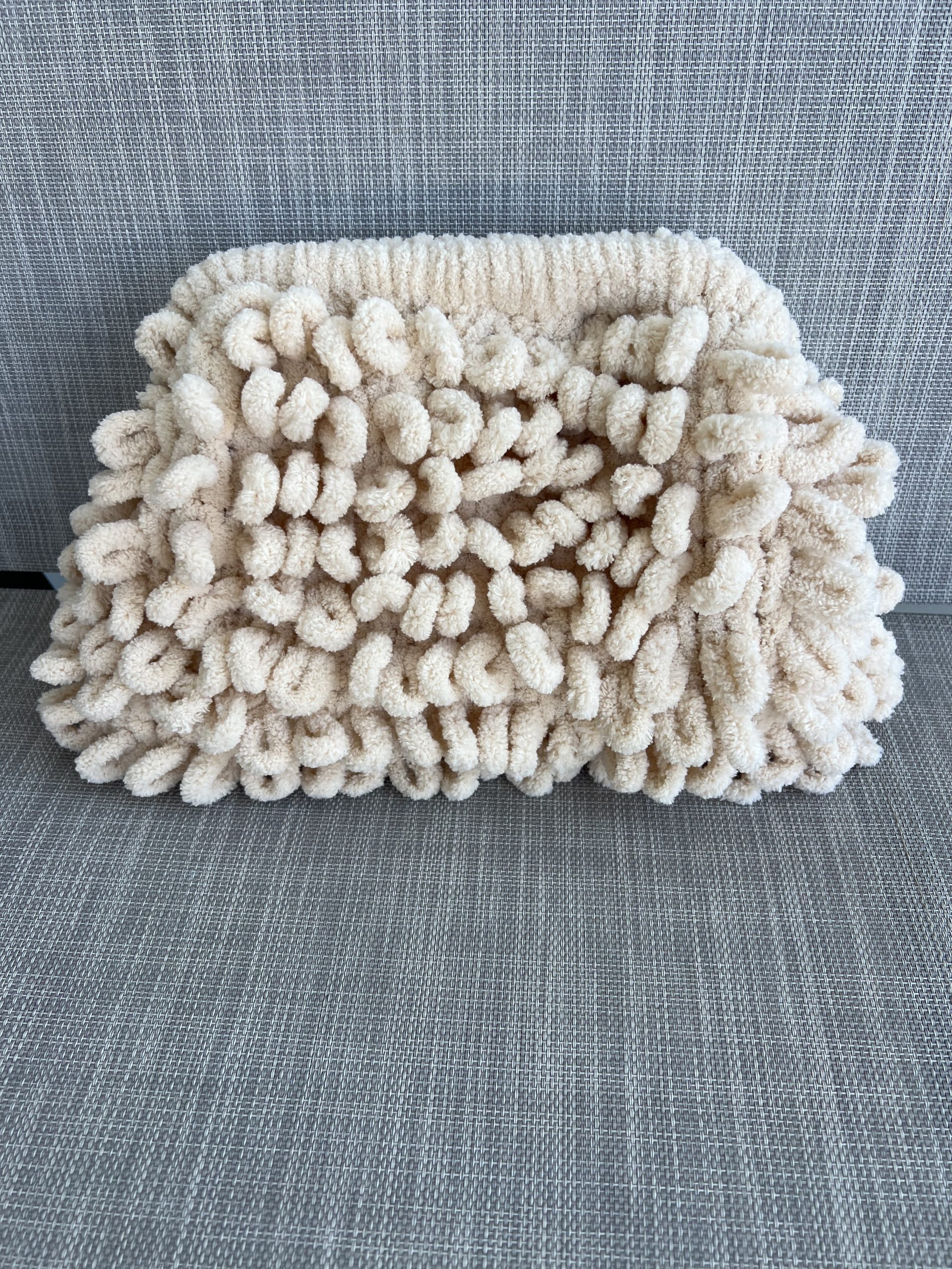 Χνουδωτή χειροποίητη τσάντα τύπου clutch.