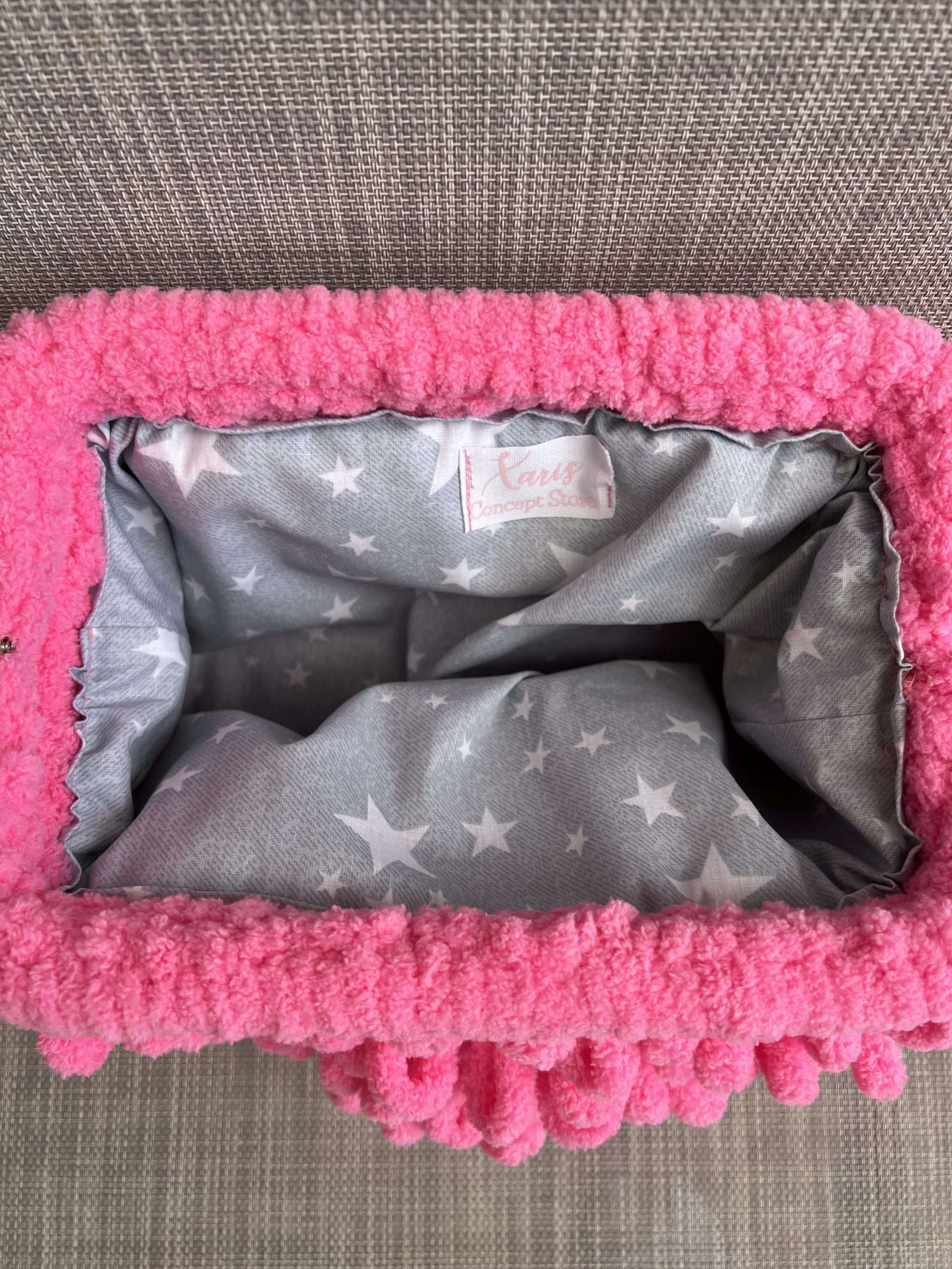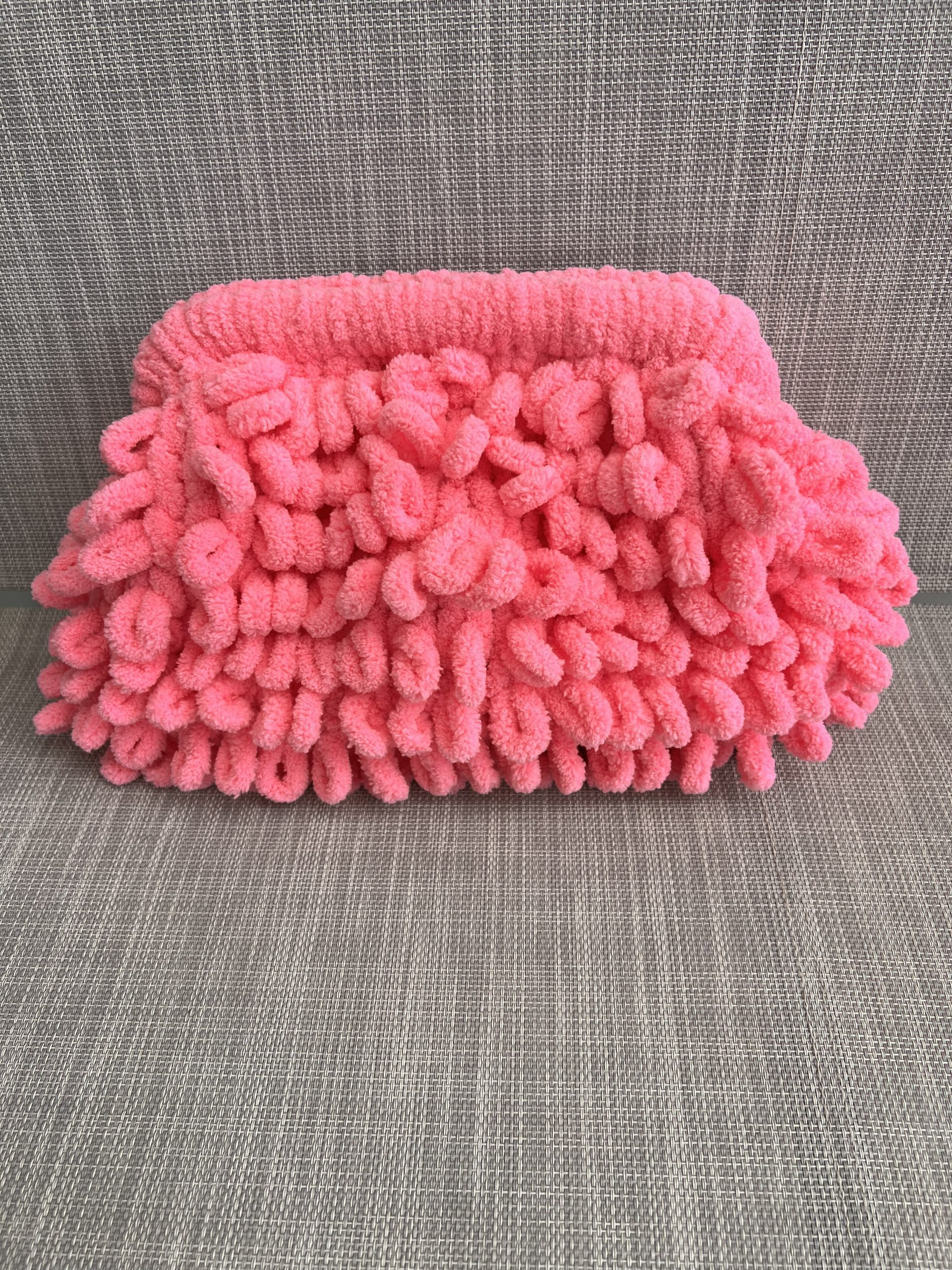 Χνουδωτή χειροποίητη τσάντα τύπου clutch.