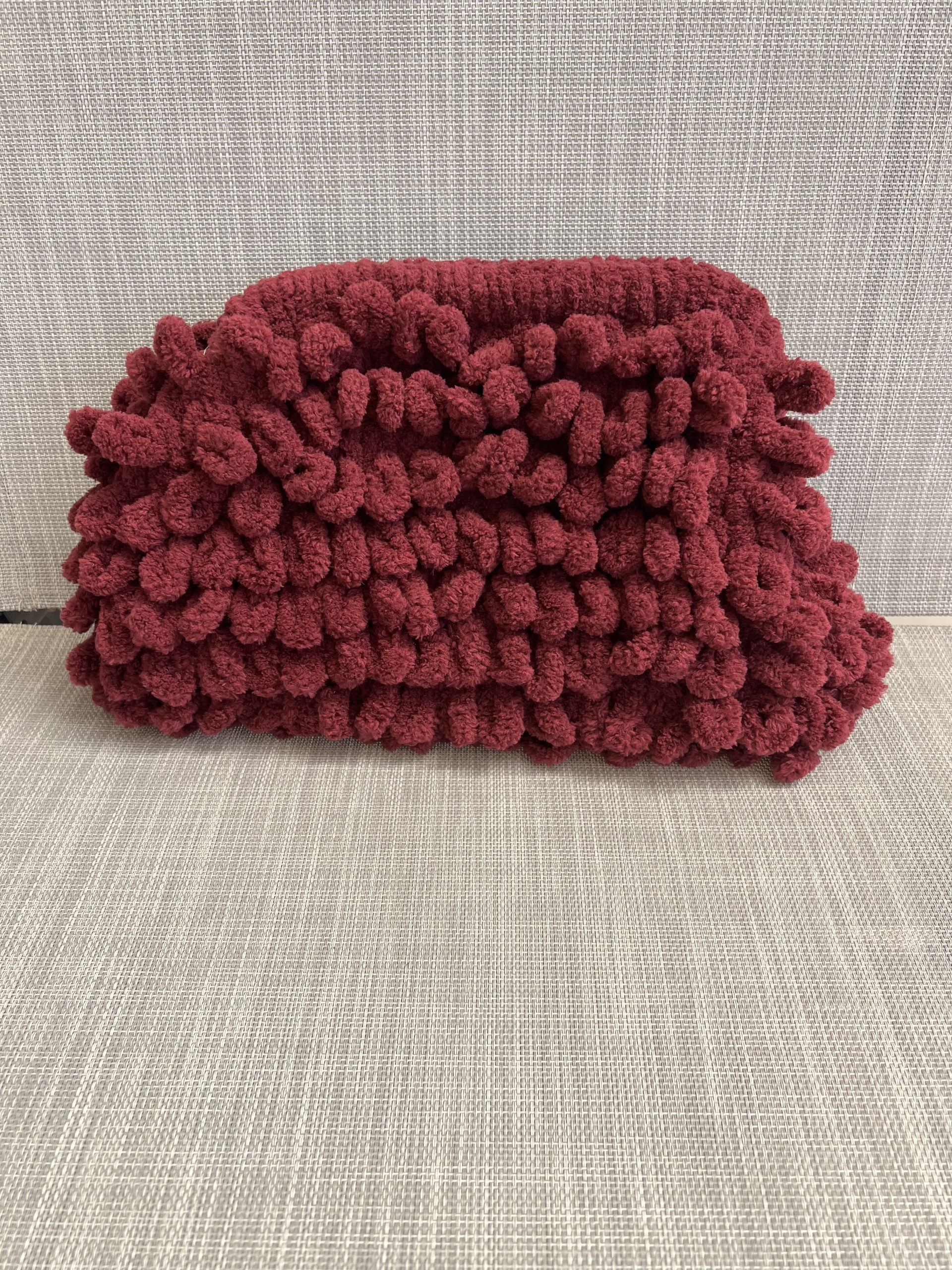 Χνουδωτή χειροποίητη τσάντα τύπου clutch.
