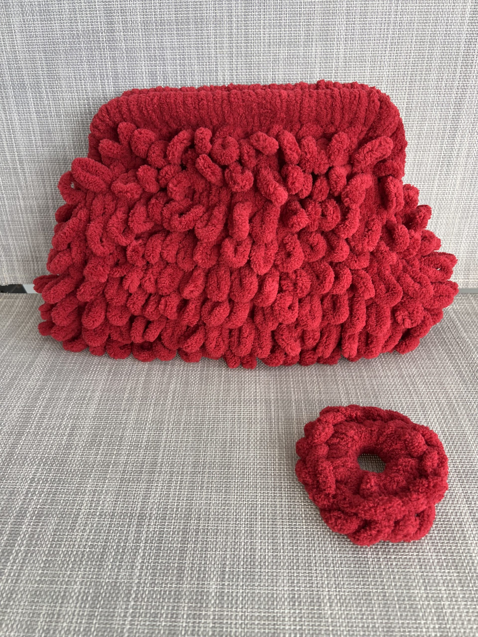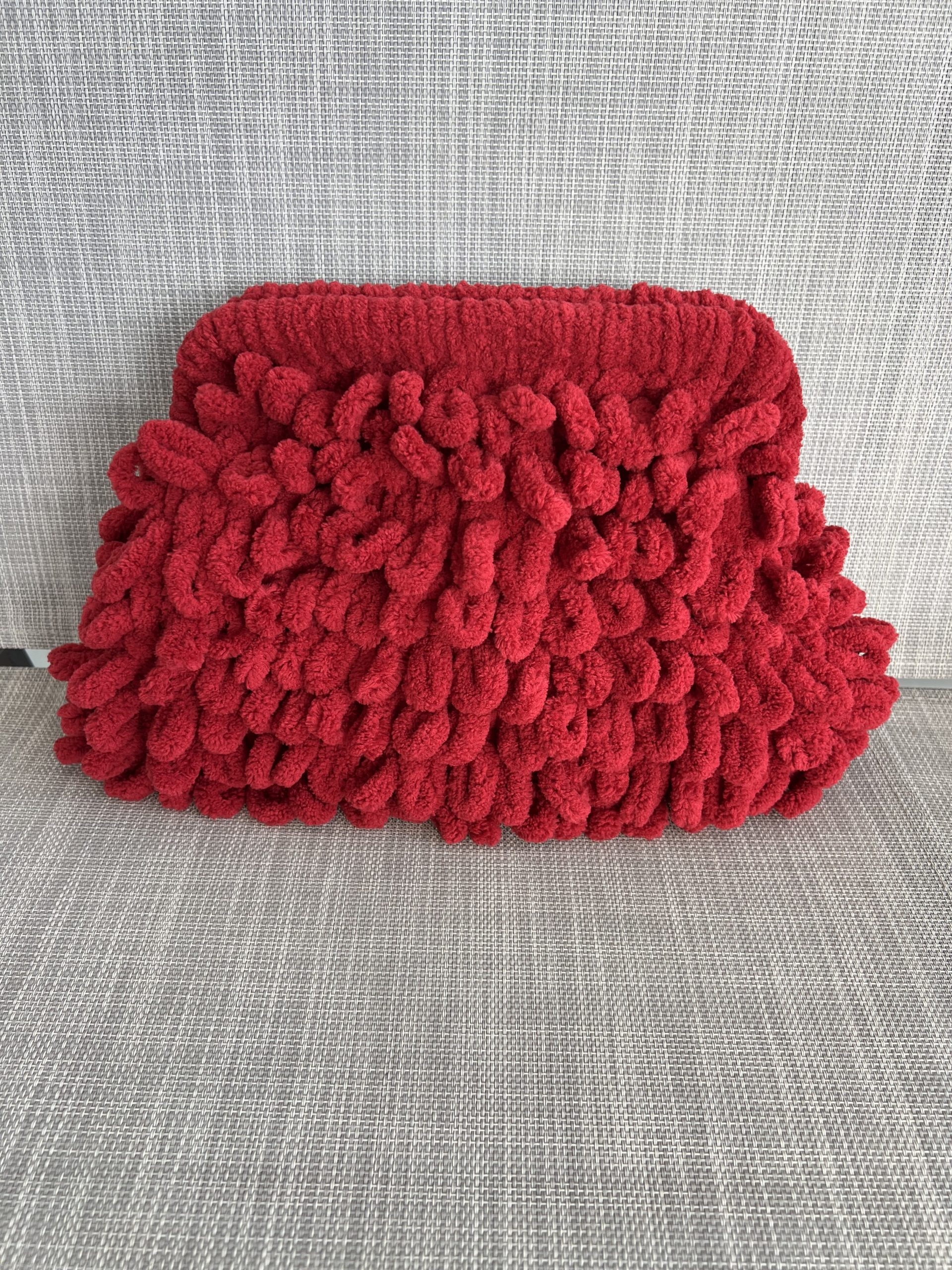 Χνουδωτή χειροποίητη τσάντα τύπου clutch.
