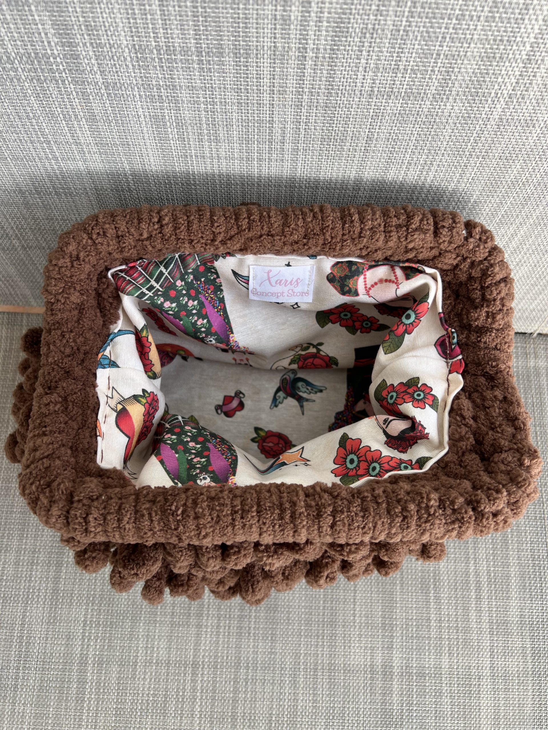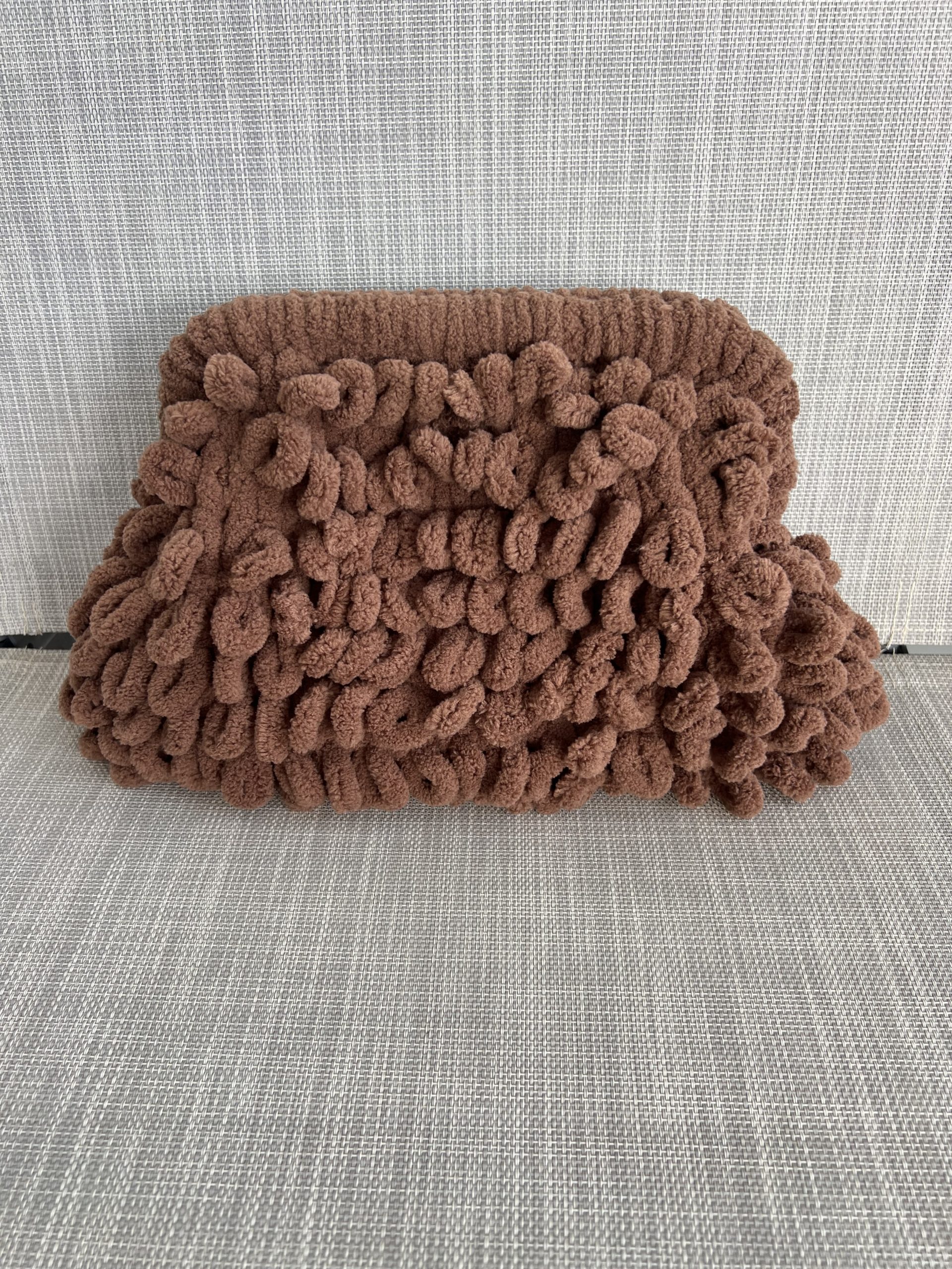Χνουδωτή χειροποίητη τσάντα τύπου clutch.