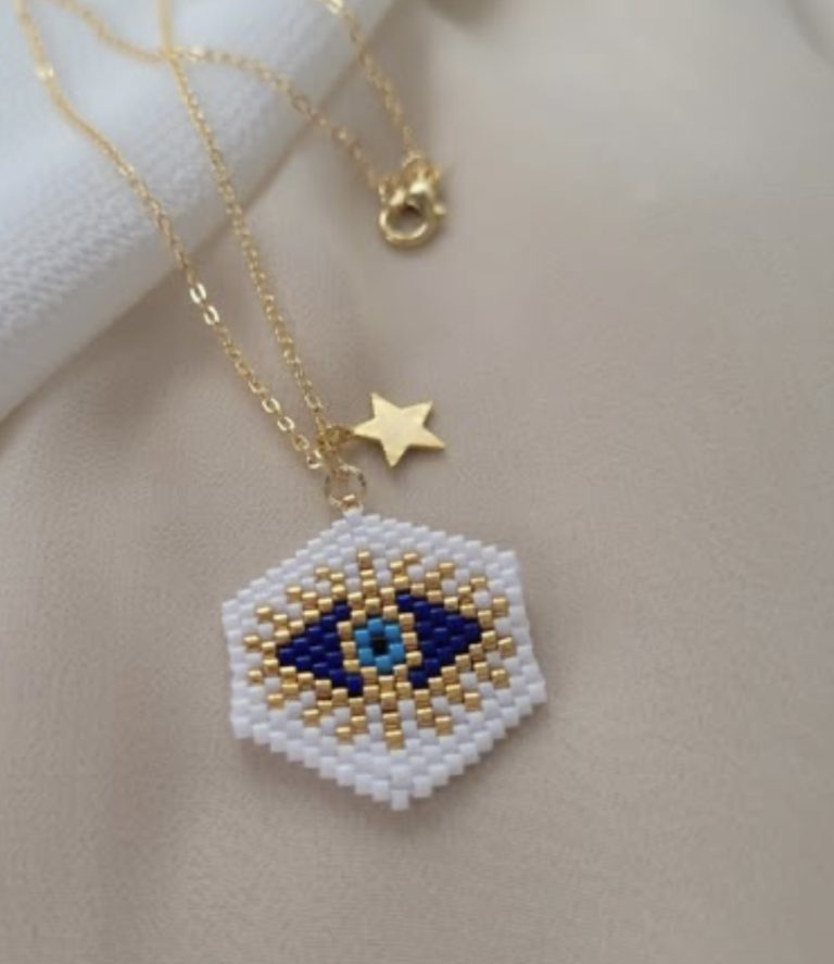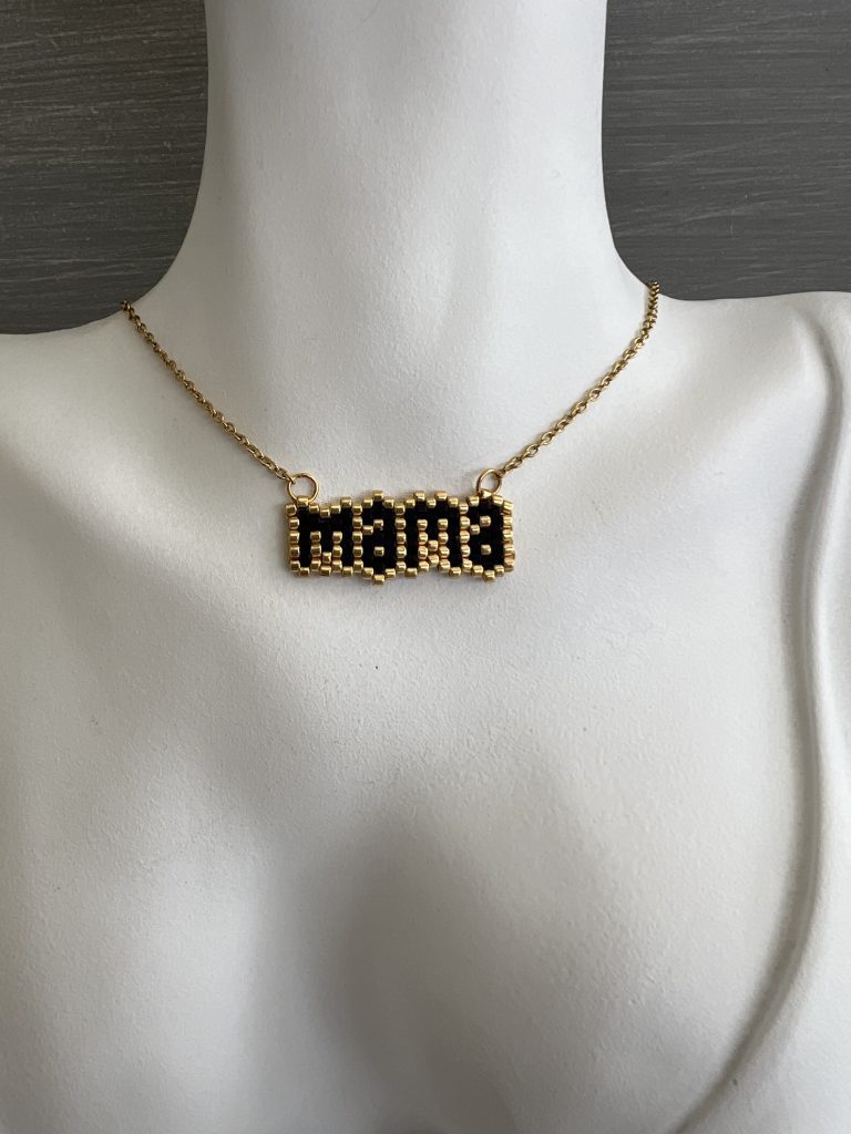 Κολιέ τρίγωνο κεντημένο με χάντρες Miyuki και μαύρο κορδόνι