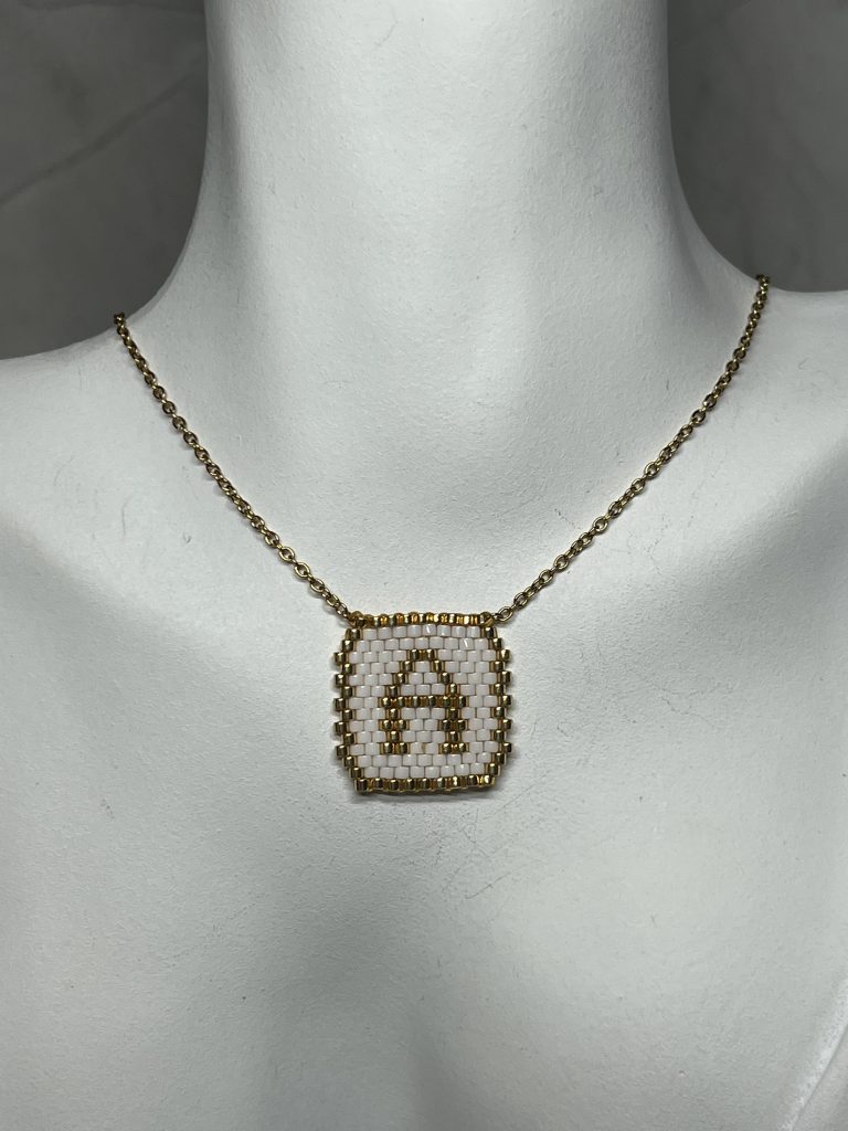 Χρυσό κολιέ με μονόγραμμα Α κεντημένο με χάντρες Miyuki